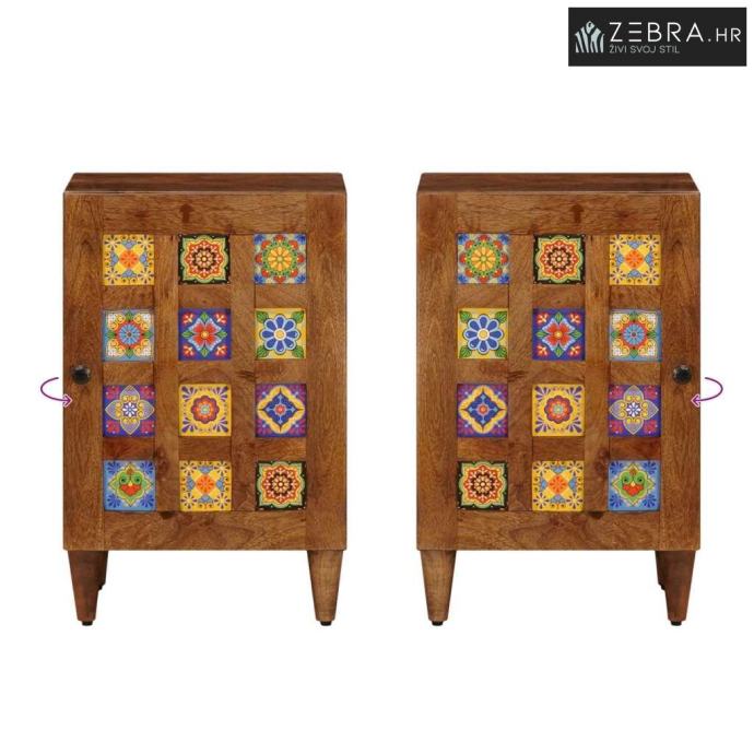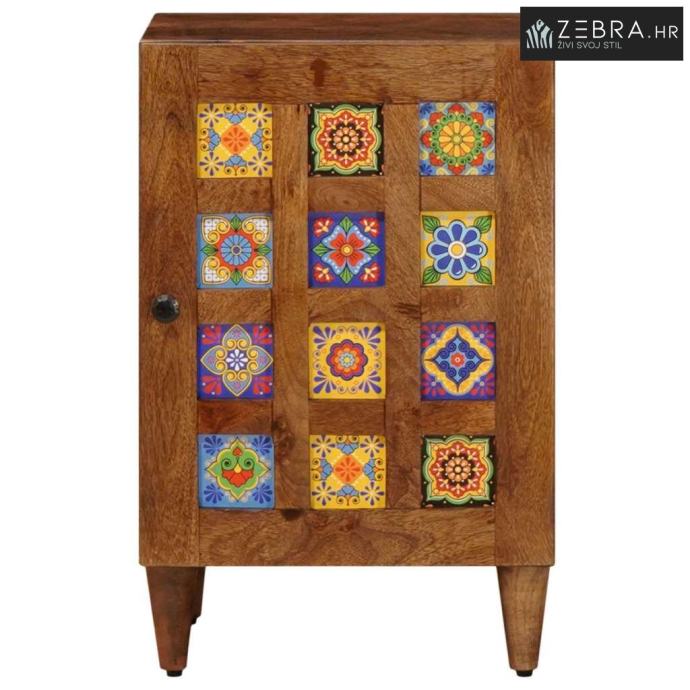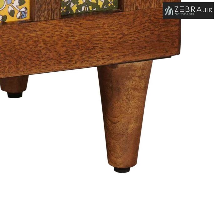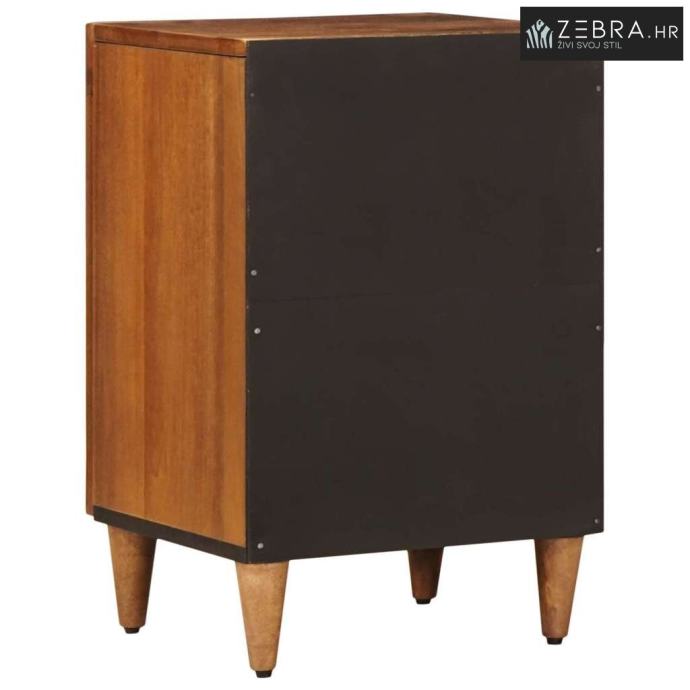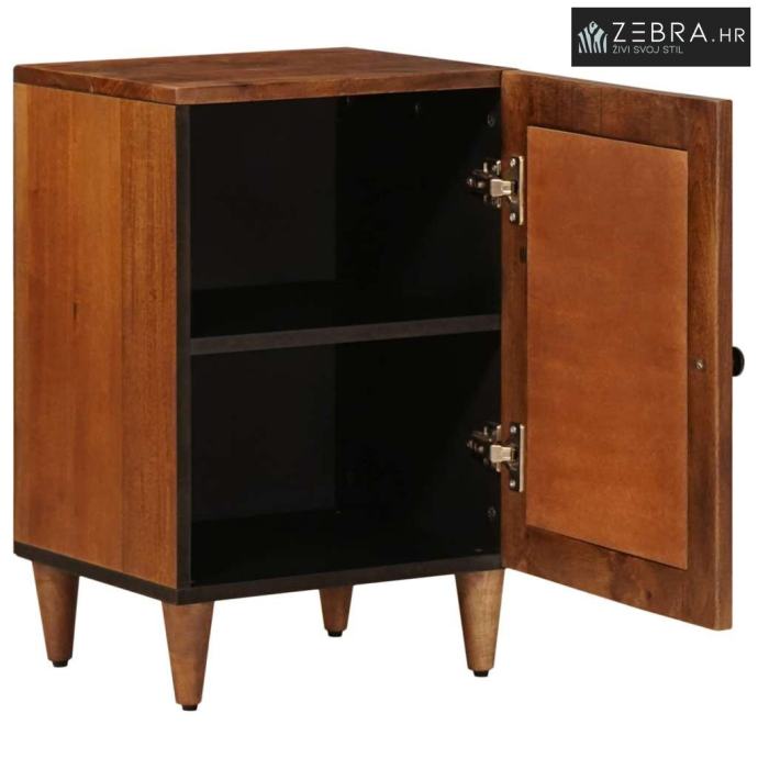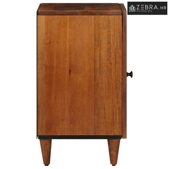 Masivno drvo manga: Ova komoda ima čvrsta vrata i površinu od kvalitetnog masivnog drva manga, poznatog po svojim nježnim uzorcima i trajnosti. Pruža robusnu strukturu koja izdrži svakodnevnu upotrebu, a ujedno donosi toplinu u vaš prostor, stvarajući ravnotežu s ostalim kupaonskim elementima.