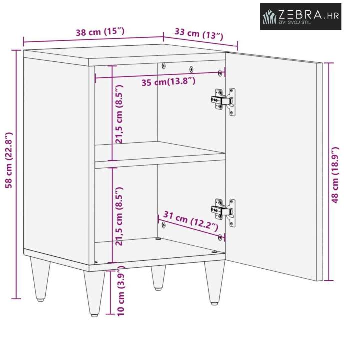 Sveukupne dimenzije: 38 x 33,5 x 58 cm (D x Š x V)