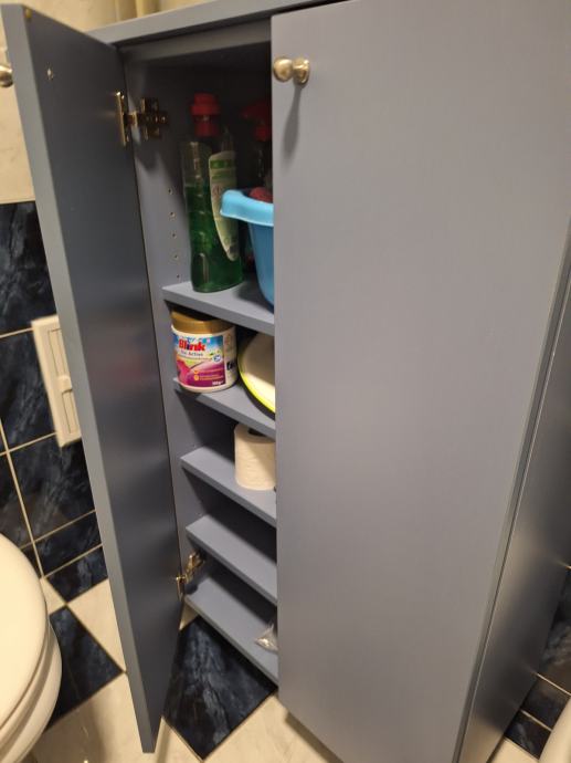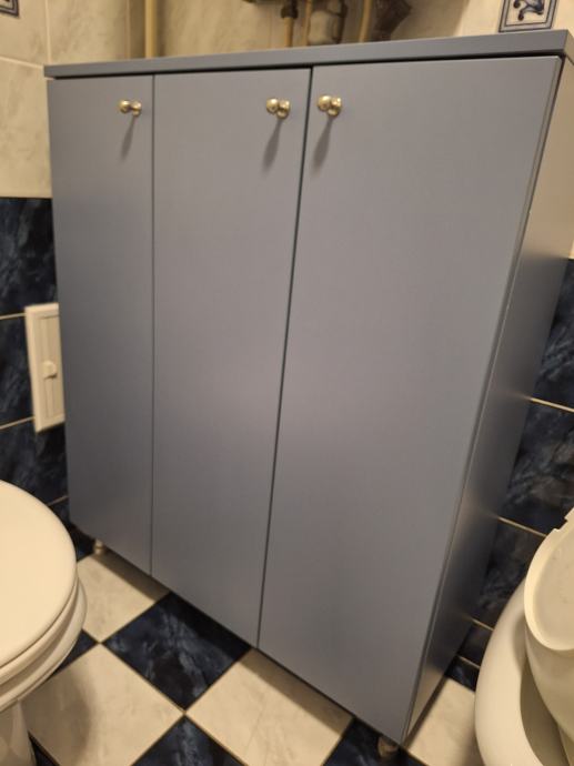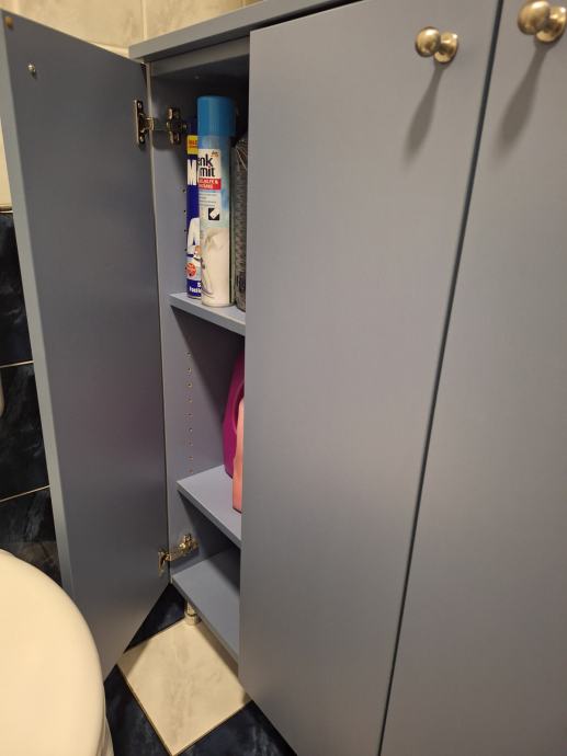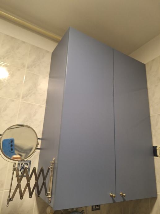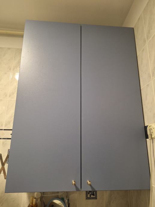 Jako uščuvan viseći ormar s 3 police (2 vrata) i ormar na nogicama (3 vrata). Uz viseći ormar na bočnoj strani ide i ogledalce iz Ikee, montirano na ormar- novo.