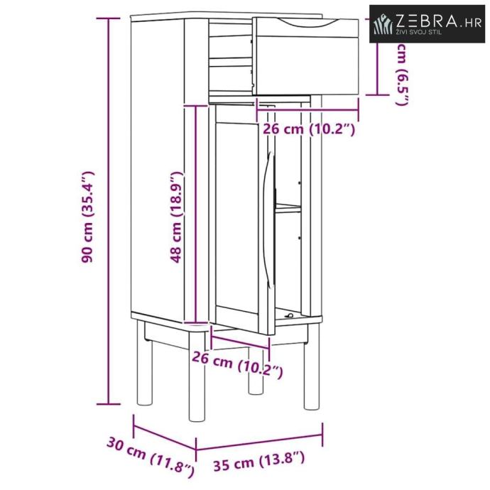 Sveukupne dimenzije: 35 x 30 x 85 cm (D x Š x V)