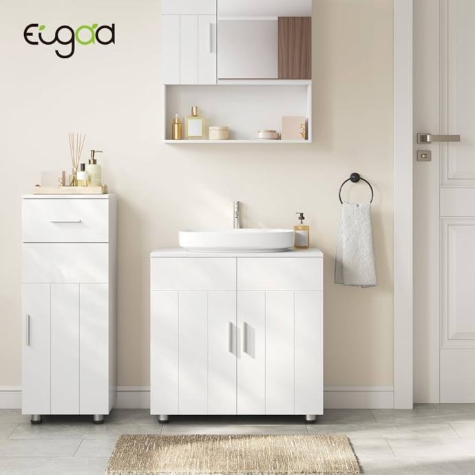 【Otporan na vlagu】Ormarić za kupaonicu ispod umivaonika izrađen je od MDF-a klase E1, čvrstog i izdržljivog. Lakirana površina je glatka i jednostavna za čišćenje, što poboljšava nepropusnost ormarića za kupaonicu i čini ga otpornim na vlagu.