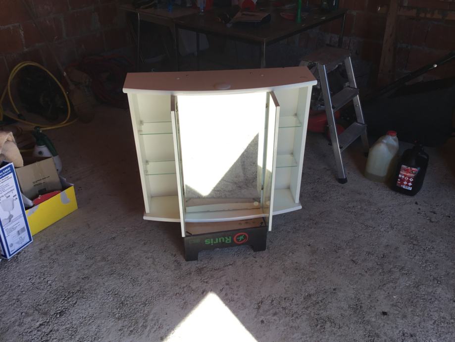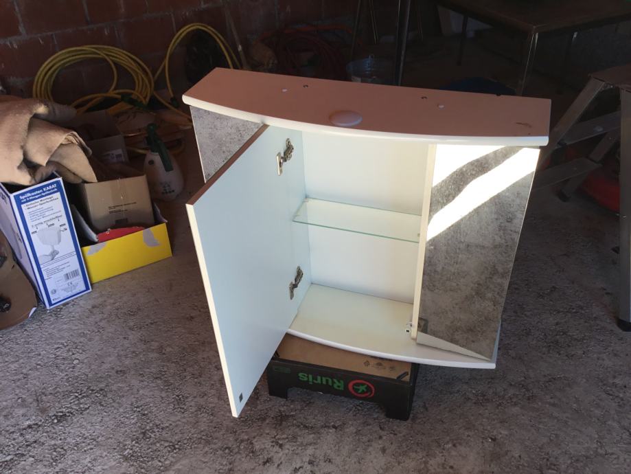 Odlicno ocuvani kupaonski ormaric sa spiglom i staklenim policama. Dimenzija:sirina 75 cm i visine 65 cm.