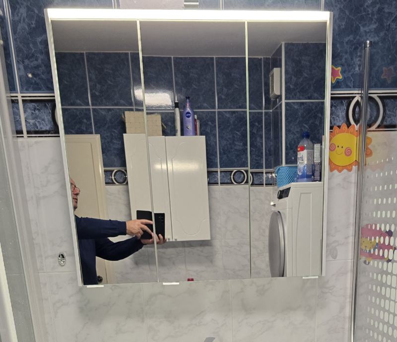 Dimenzije 80 x 74 x 14 cm, tri pregratka sa integriranom led rasvjetom. Bez ogrebotine.