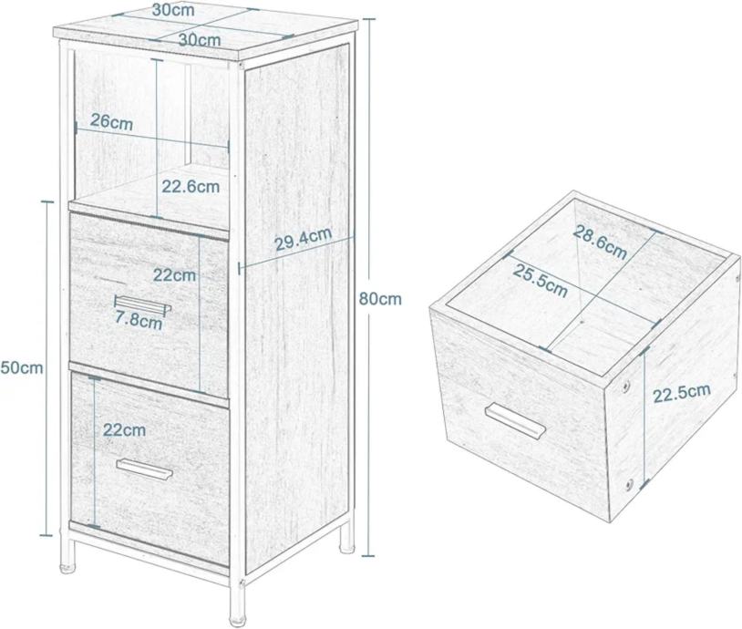 Dovoljno prostora za pohranu: s 2 ladice, 1 otvorenim odjeljkom i 1 pokrovnom pločom, ova mala polica za pohranu zauzima samo 0,09 m2, tako da se kutovi sobe mogu optimalno iskoristiti i pruža puno prostora za pohranu različitih predmeta