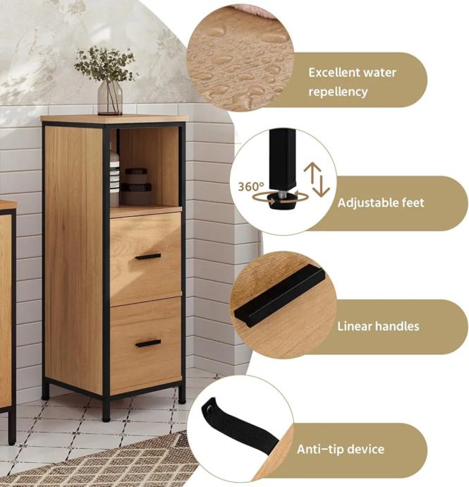 Višenamjenski: Svojim jednostavnim i modernim izgledom, ormarić s ladicama uklapa se u svaki stil uređenja. Može se koristiti kao kupaonski ormarić, bočni ormarić u dnevnoj sobi, noćni ormarić u spavaćoj sobi, komoda pored sofe itd.