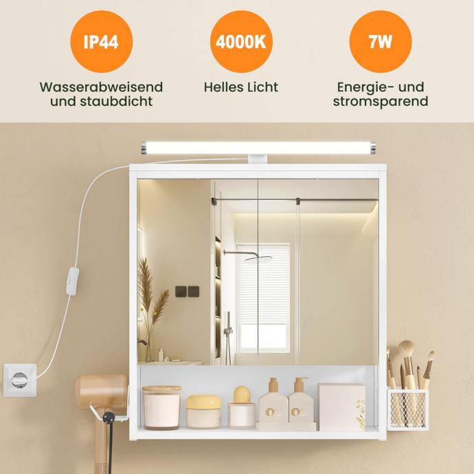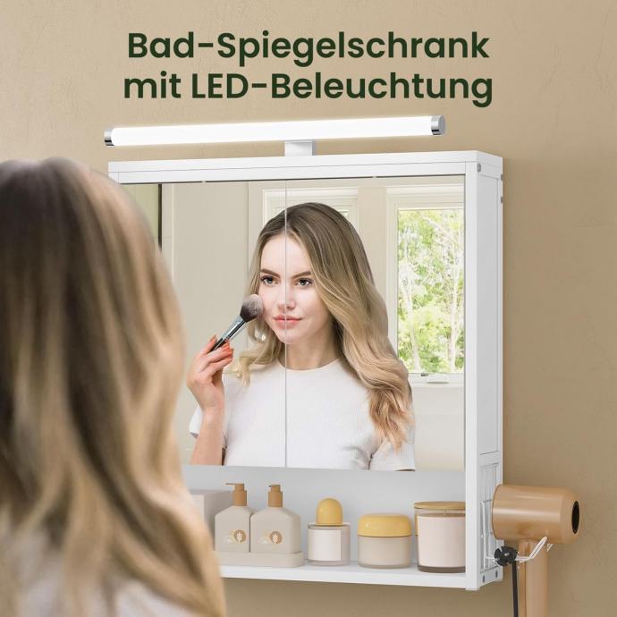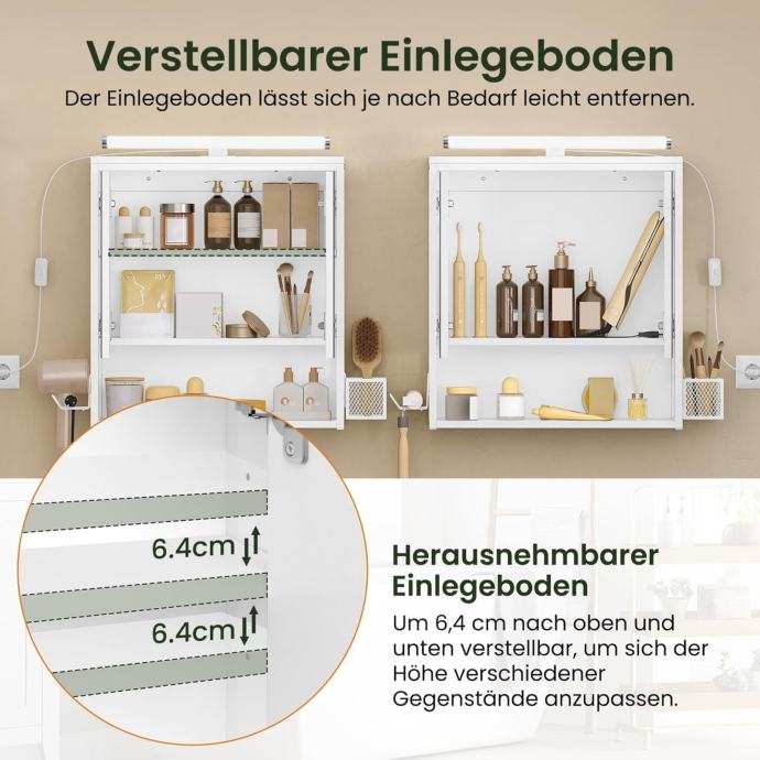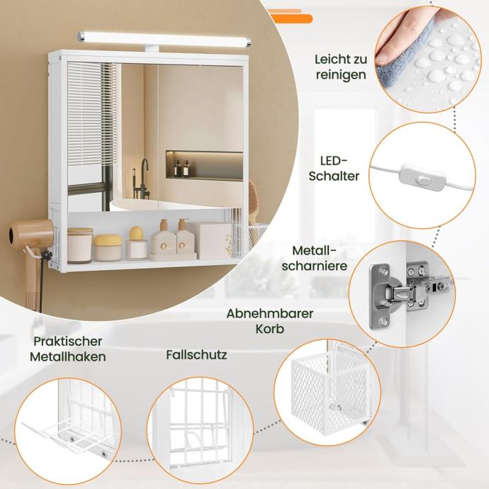 ogledalom i rasvjetom, Kupaonski ormarić s ogledalom, Viseći kupaonski ormarić s podesivim držačem police i košarom, Izrađen od metala MDF, Crni + svijetli hrast