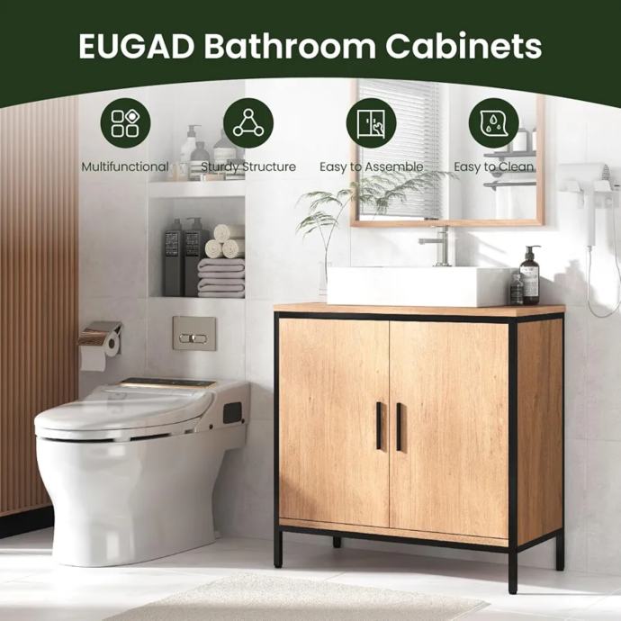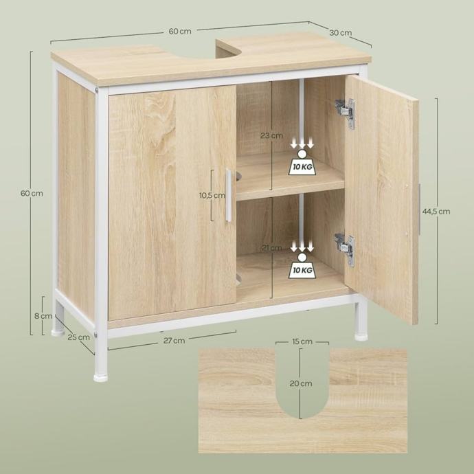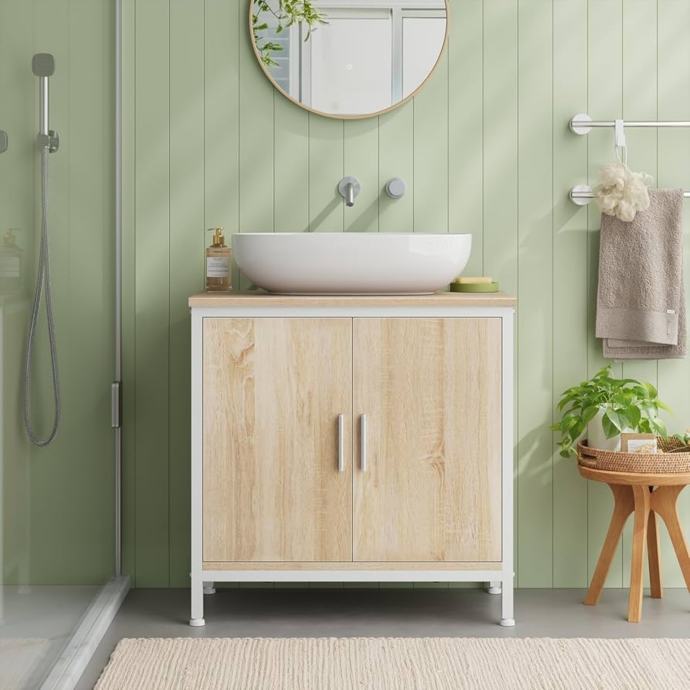Ormarić za umivaonik 60 x 60 x 30 cm, Kupaonski ormarić s pregradom podesivom po visini, Mali kupaonski ormarić izrađen od drvenog materijala,