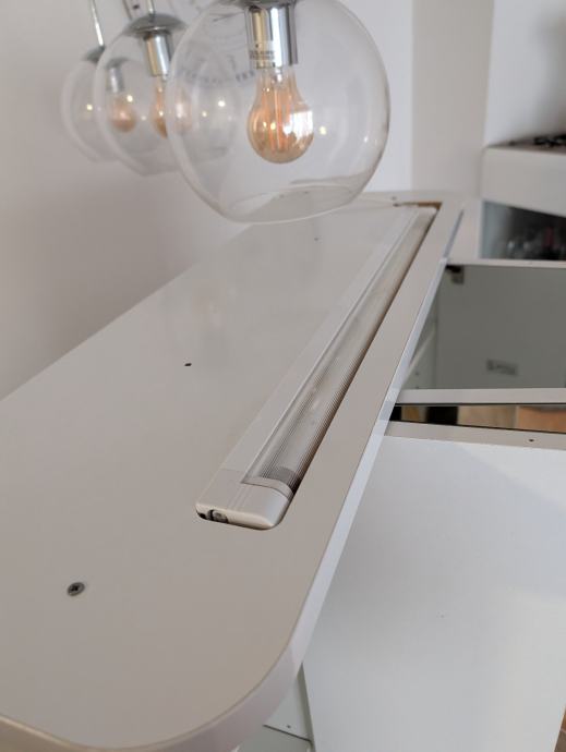 Konstrukcija je od bijelog MDF-a, čvrsta i uredna, bez oštećenja ili tragova vlage.