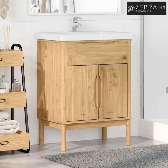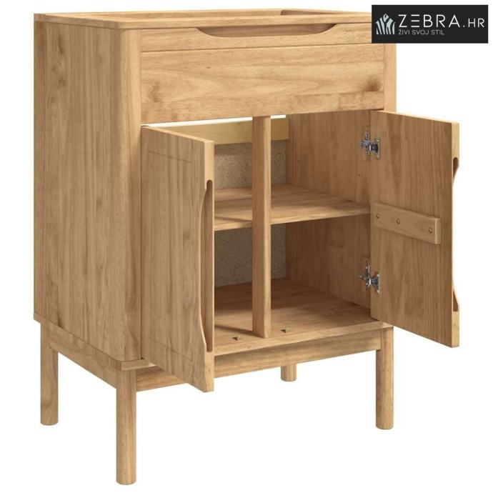 Izrada od masivnog bora Izrađen od masivnog borovog drva, ovaj ormarić ima prirodnu ljepotu i trajnost. Čvrsta izrada osigurava pouzdanu osnovu za svakodnevnu upotrebu, dok topli ton materijala donosi prirodnu notu koja se uklapa s raznim kupaonskim dekorima.