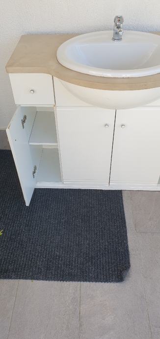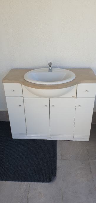 Prodajem komplet kupaonski element sa umivaonikom, špinom i sifonom zajedno sa ogledalom, Dimenzije elementa su širina 100 cm, dubina 56 cm., a ogledala širina 105 cm, a visina 110 cm.