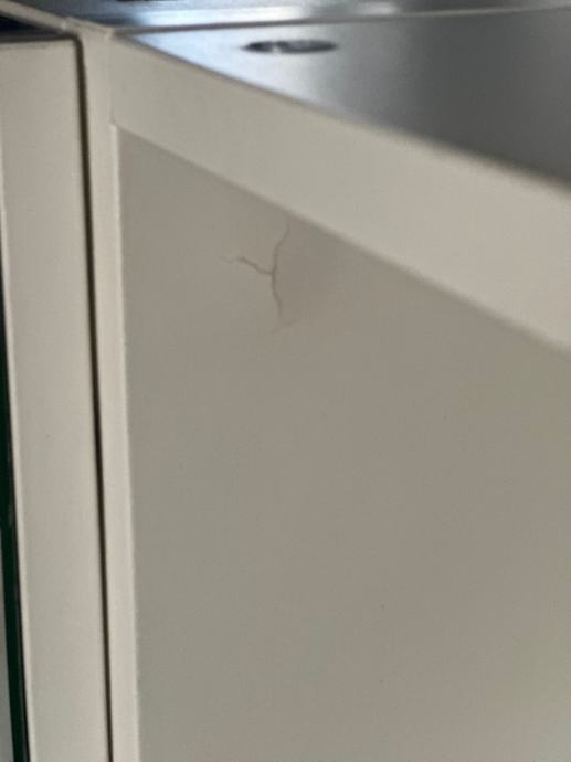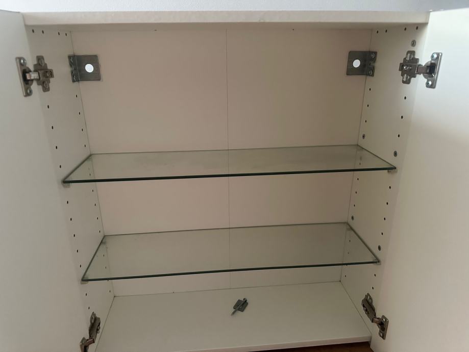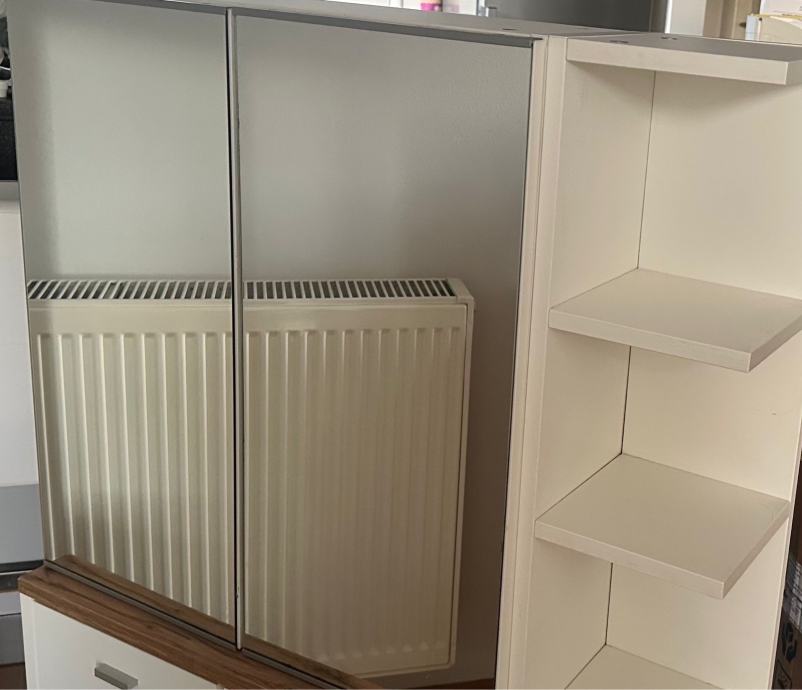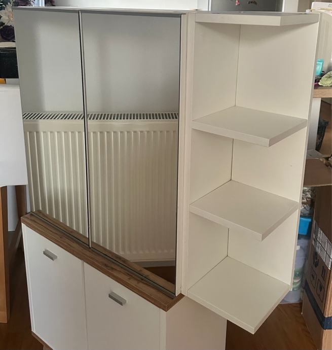 Bijeli zidni kupaonski ormarić s ogledalom, kupljen i Ikei. Ormaric je koristen ima minimalo ostecenje na dasci kod vanjske police (jos od montaze na straznjoj strani)