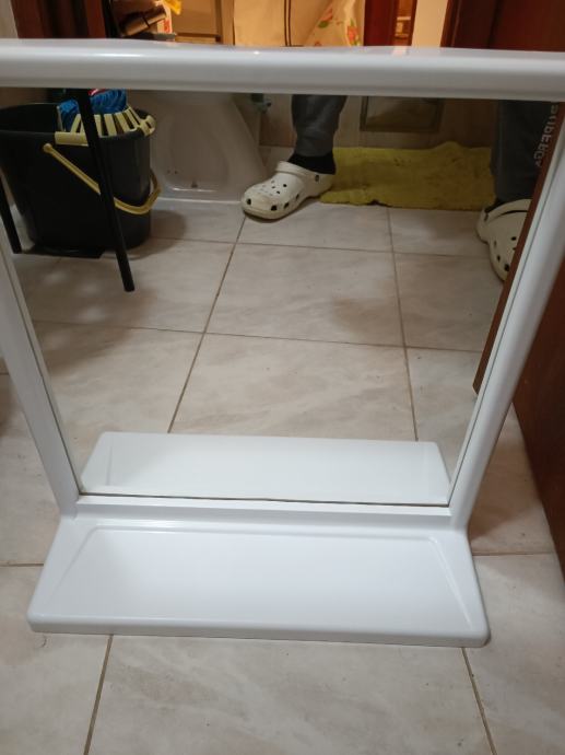 Prodajem novo kupaonsko ogledalo sa policom, materijal bijela plastika, nekorišteno zbog kupnje većeg ogledala.