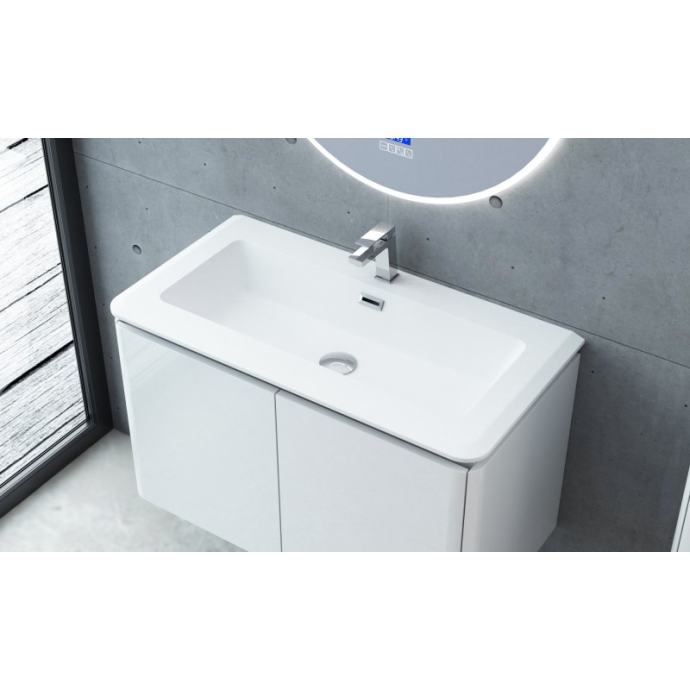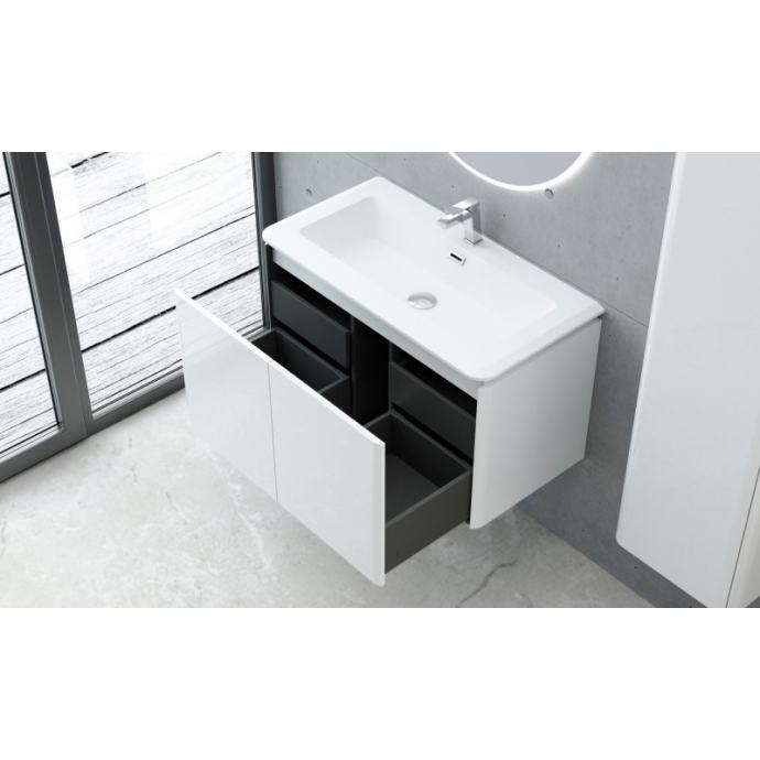 Set se sastoji od elegantne baze i umivaonika od umjetnog mramora koji se može sastaviti. Baza ormarića dimenzija je 94x48x55 cm i izrađena je od lakiranog MDF-a debljine 18 mm u visokom sjaju. Ima četiri ladice s mehanizmima za meko zatvaranje koji omogućuju nježno i tiho zatvaranje. Zbog elegantnog dizajna i visokokvalitetnih materijala, ovaj set idealan je izbor za svaku modernu kupaonicu.