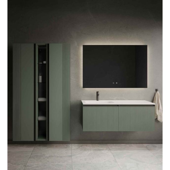 Poličar kupaonskog kompleta Mirage u dekoru zeleni mat. Modularne bočne ormariće Mirage moguće je kombinirati i prilagoditi svakom prostoru i njegovim zahtjevima.