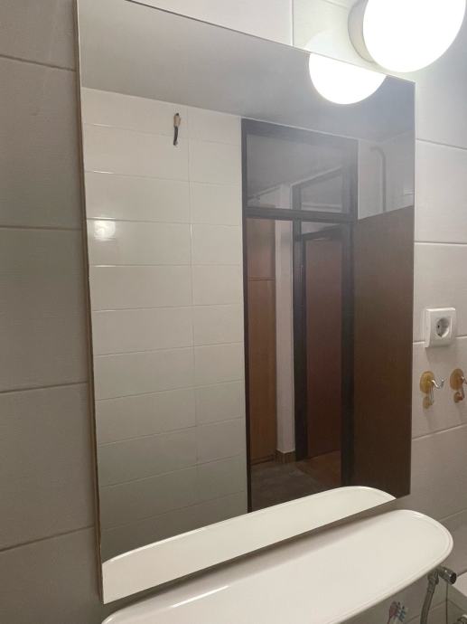 Ogledalo za kupaonicu ili bilo gdje, na drvenoj podlozi, 80x60, vješa se na kukice , bez oštećenja, kao novo.