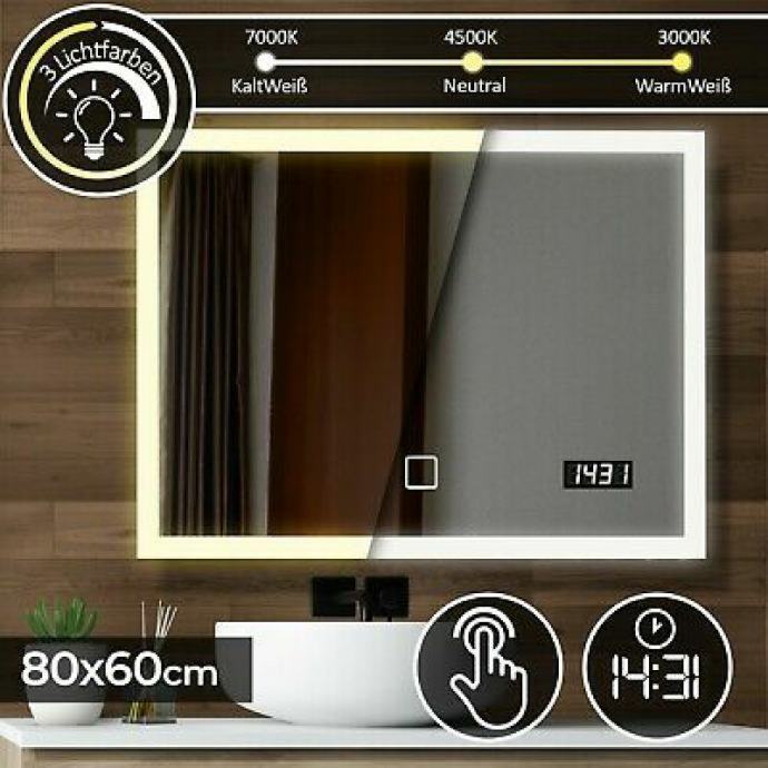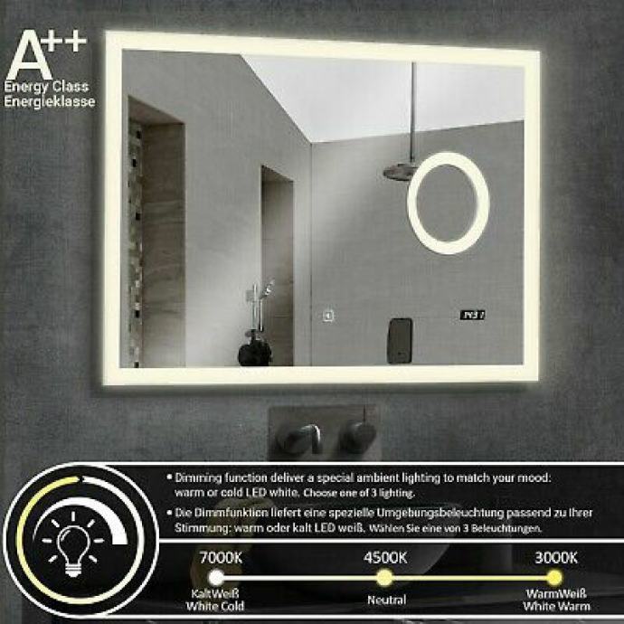Kupaonsko ogledalo sa antifog sustavom, stom, osvijetljenjem tri jačine svjetlosti.