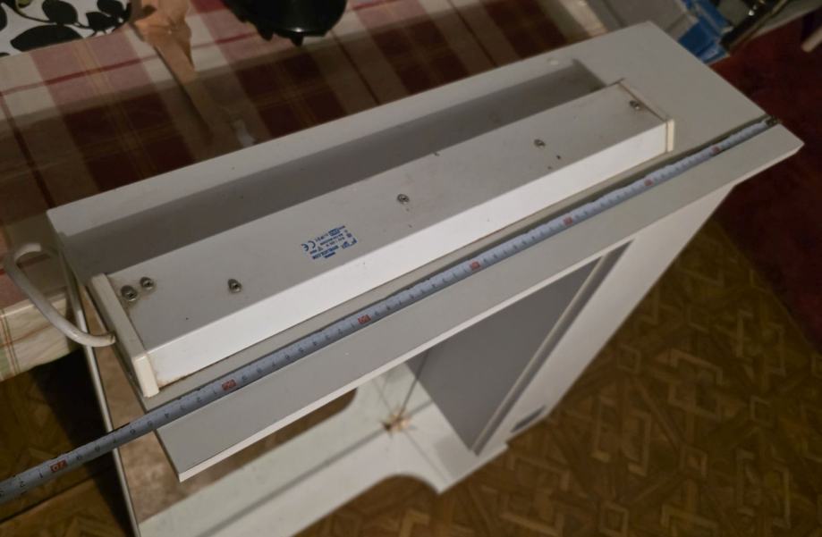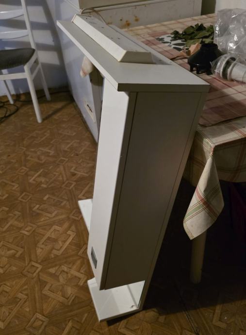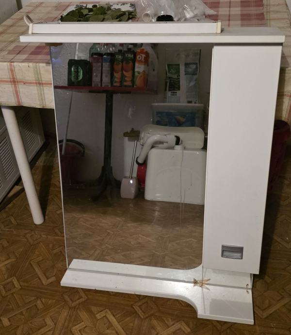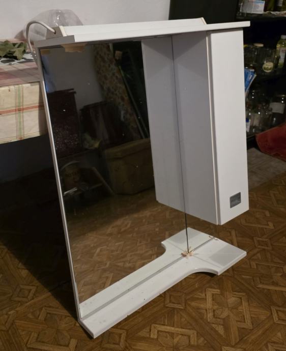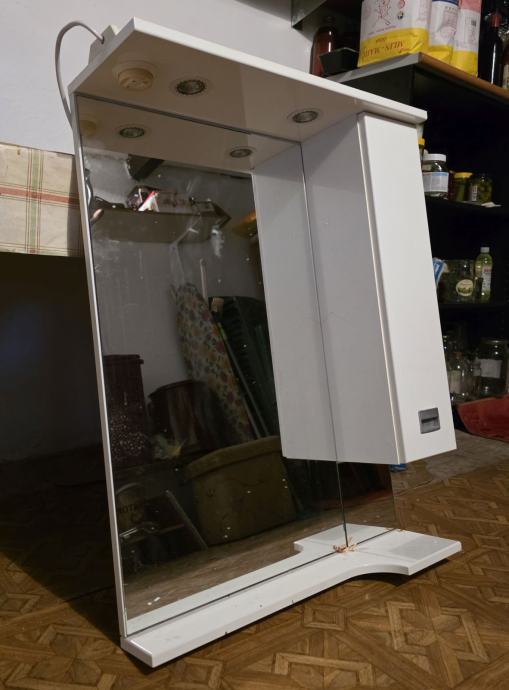 Komplet ogledalo i ormarić, u dobrom stanju, nema oštećenja, sve je ispravno. Visoki sjaj, bijela boja, rasvjeta s 2 žarulje.