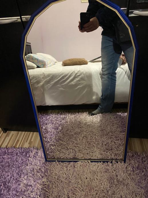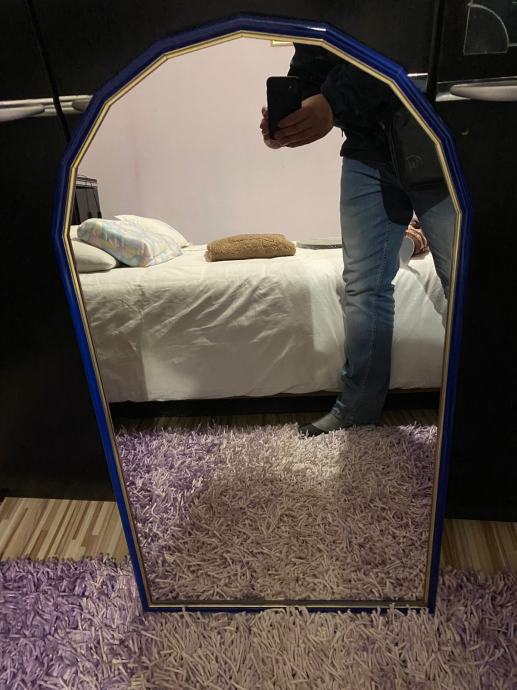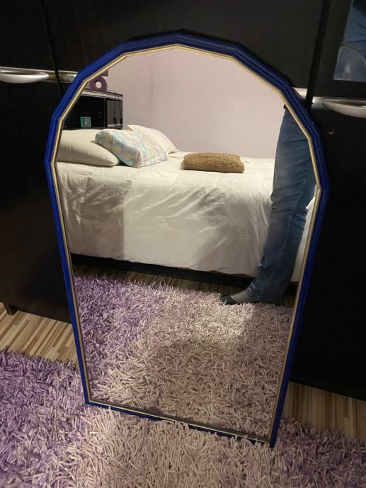 Prodajem efektno ogledalo s plavim okvirom.