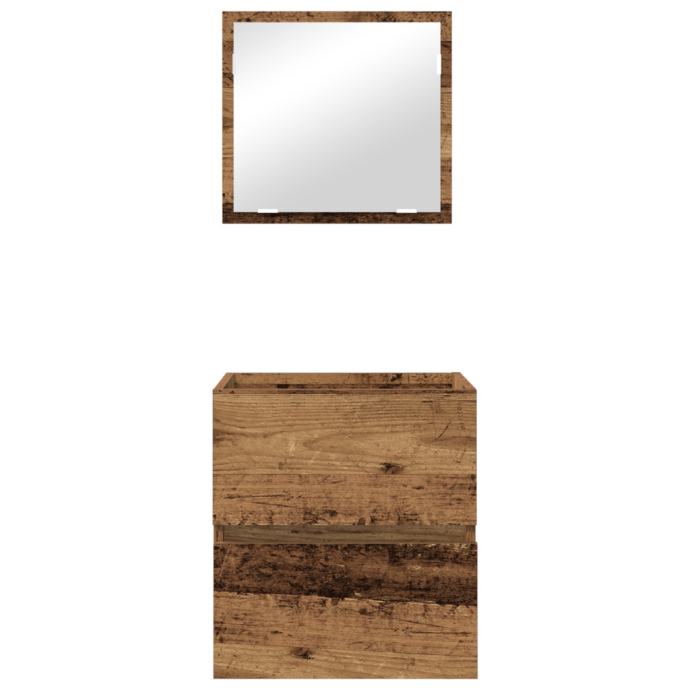 Ovaj moderni ormar za kupaonicu spaja funkcionalnost s rustikalnim stilom, pružajući ti odličan način da održiš red u kupaonici. S dvjema ladicama i ogledalom, ne samo da štedi prostor, već i izgleda dobro, nudeći puno skladišta. Savršen je za svakoga tko želi biti organiziran bez gubitka stila.