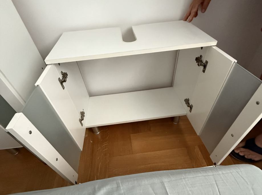 Mali ormar dimenzije: visina (od poda): 53,5 cm, dubina: 31 cm, širina: 64,5 cm. Dolaze zajedno sa policama.