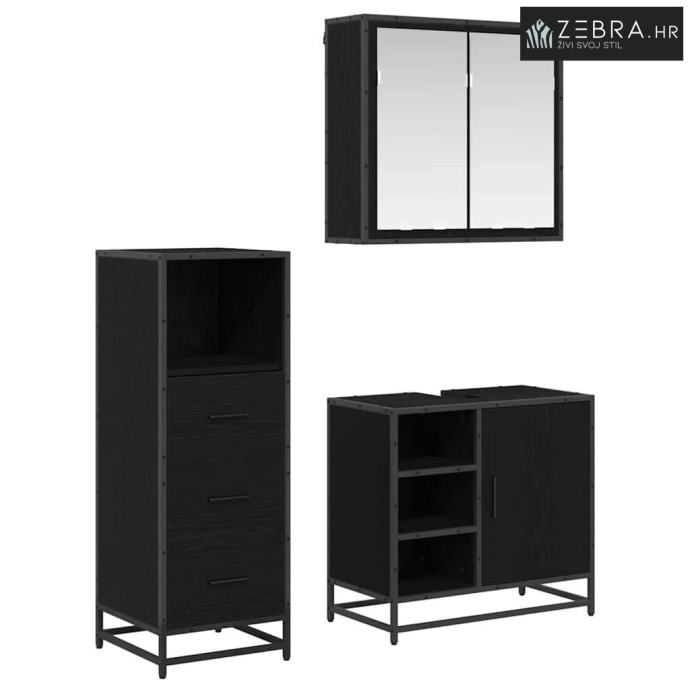 Set namještaja za kupaonicu 3 pcs Crni hrast Konstruirano drvo