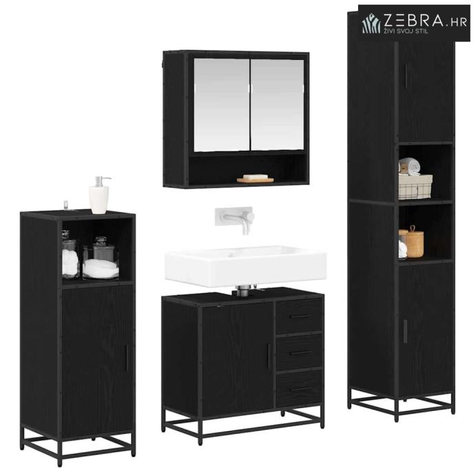 Set namještaja za kupaonicu 4 pcs Crni hrast Konstruirano drvo