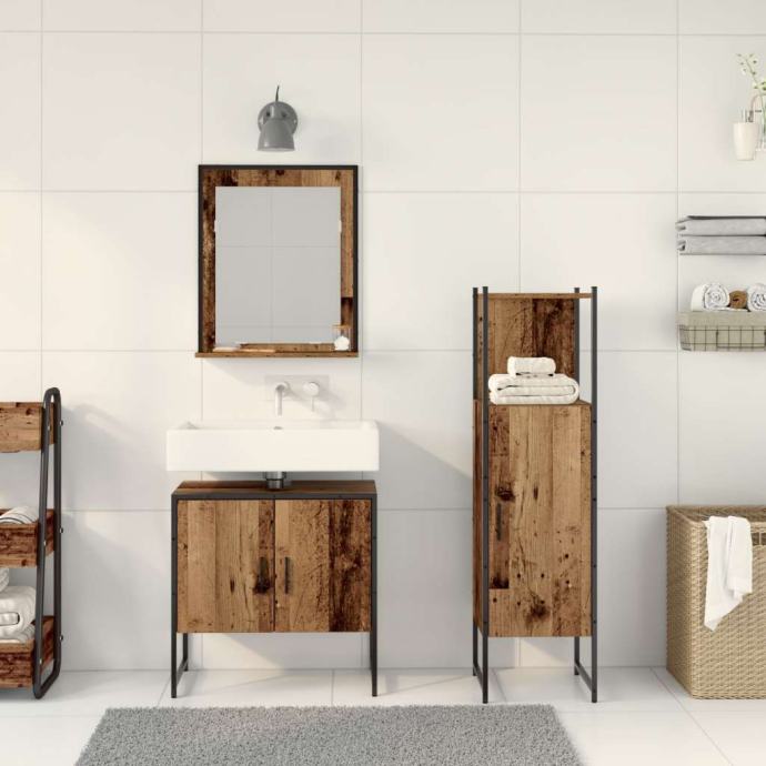 Set ormarića za kupaonicu - 3 komada od starog drva i umjetnog drveta