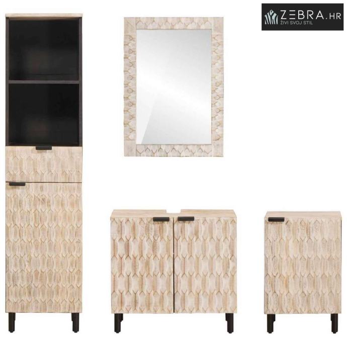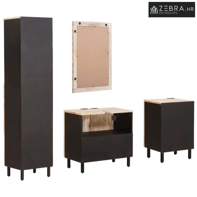 Kompletan set uključuje: Paket sadrži ormarić za umivaonik, ogledalo i dva dodatna ormarića - sve što vam treba za organski i stilizirani prostor. Sve komponente su pažljivo izrađene za skladan dizajn koji poboljšava vizualni dojam kupaonice.