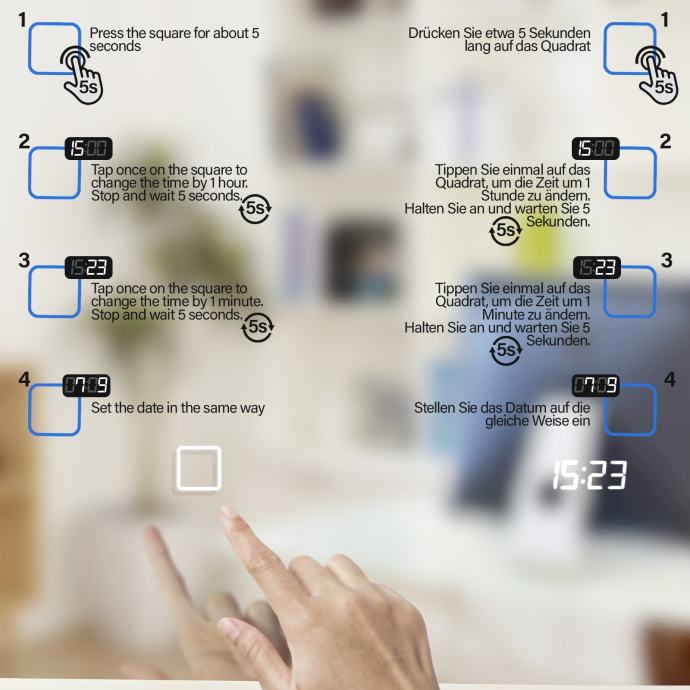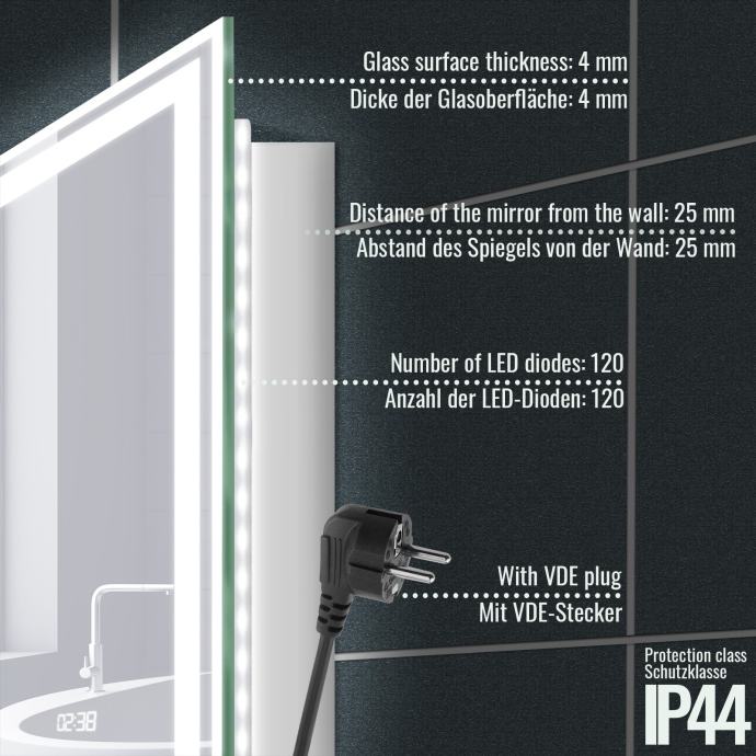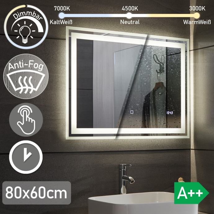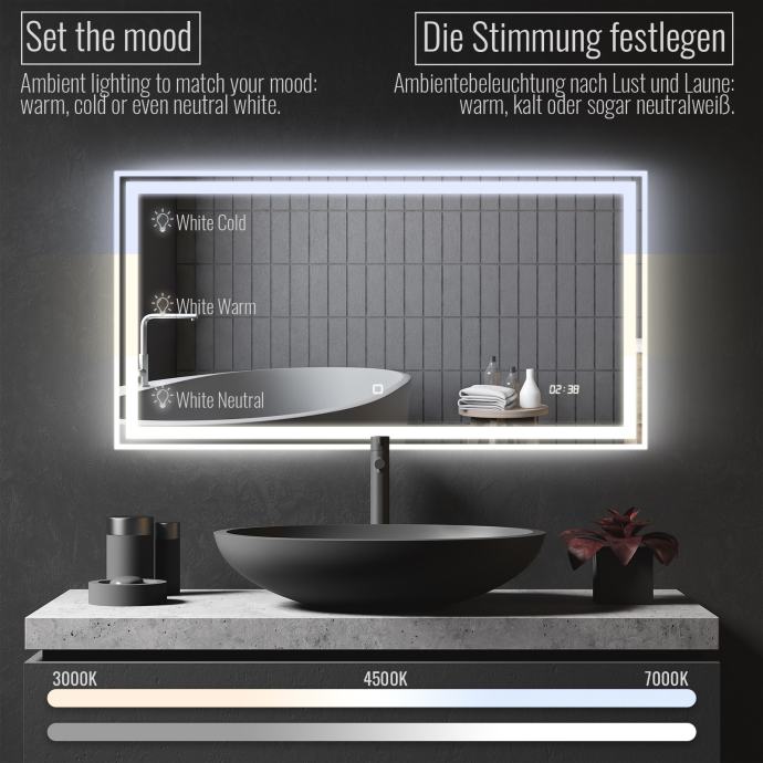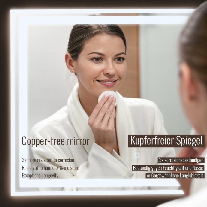 Unesite djelić napredne vibracije u svoju kupaonicu s našim ravnim i svjetlećim zrcalima koja kombiniraju modernu estetiku s inovativnom tehnologijom. Zahvaljujući memorijskoj funkciji, postavka svjetla sprema se nakon posljednje postavke. Ako želite imati drugačiju atmosferu, možete je jednostavno promijeniti u toplu, hladnu ili čak neutralnu LED bijelu pomoću kontrole na dodir. Bez obzira koliko dugo se tuširate, funkcija protiv zamagljivanja osigurava da ogledalo uvijek ostane čisto i da možete nastaviti svoju rutinu njege kože čak i nakon tuširanja.