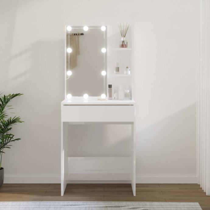 LED svjetlo: Ovaj kozmetički stolić ima LED žarulje s USB-om, koje se lako mijenjaju iz tople u hladnu bijelu. Uključene LED žarulje oko ogledala također osvjetljavaju vašu ljepotu.