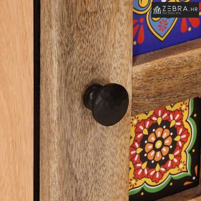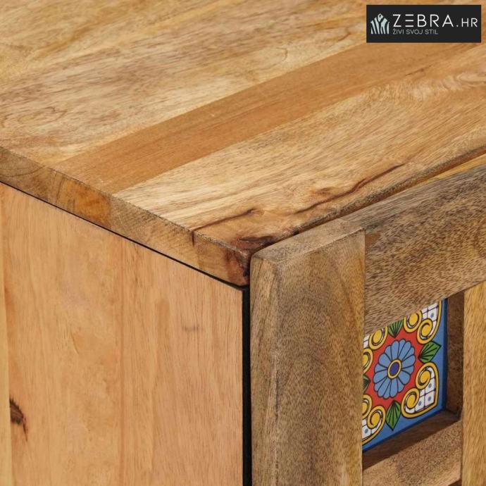 Čvrsto drvo manga: Ormar je napravljen od izdržljivog drva manga, poznatog po svojoj tvrdoći i gustoći. Prirodni uzorci i bogata smeđa boja donose toplinu i eleganciju vašoj kupaonici.