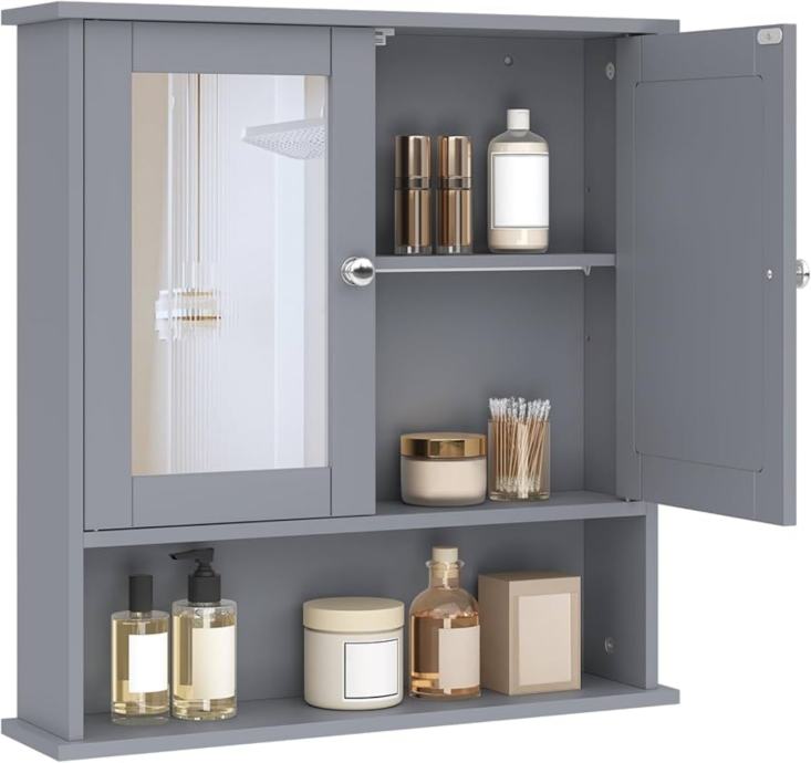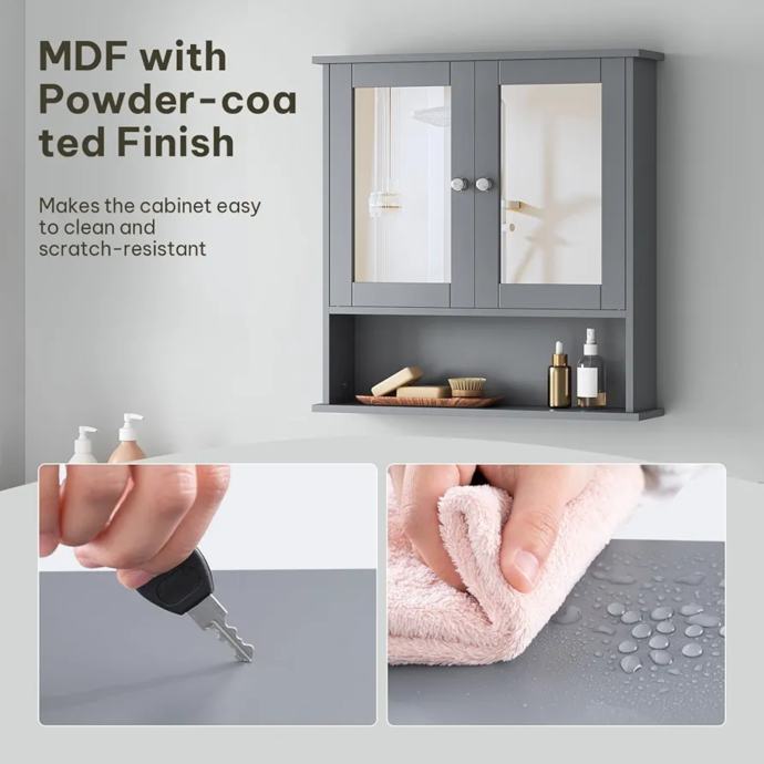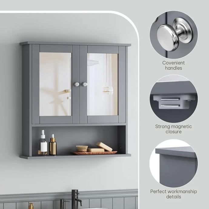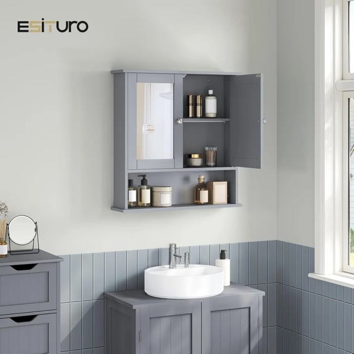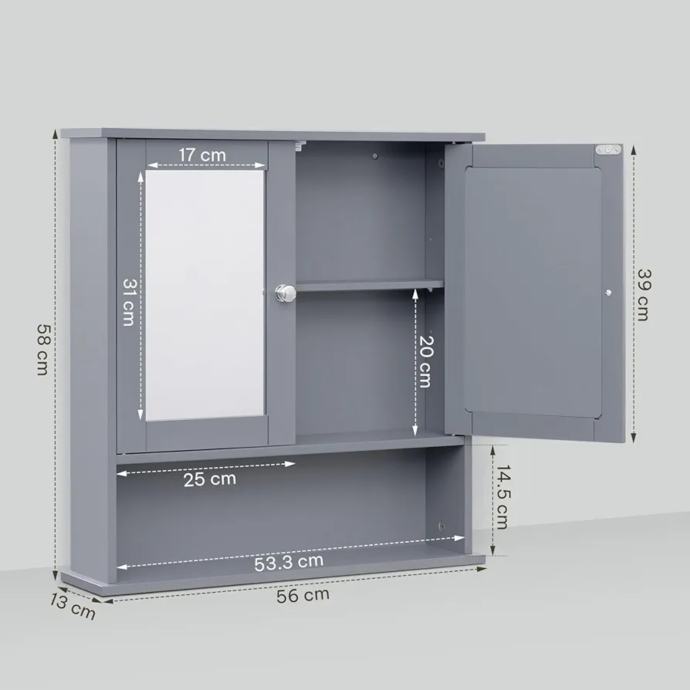 SBP0059 Ormarić s ogledalom za kupaonicu Zidni ormarić s vratima Zidni ormarić Kupaonski ormarić sivi BHT cca: 56 x 58,5 x 13 cm