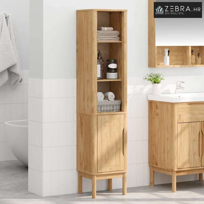 Masivna borovina: Ovaj set kupaonskog namještaja je napravljen od masivne borovine, poznate po svojoj čvrstoći i bezvremenskoj estetici. Materijal jamči dugovječnost i dodaje toplinu vašem kupaonskom ambijentu. Visoka kvaliteta pruža pouzdanu potporu za sve vaše kupaonske potrepštine, podižući funkcionalnost i izgled vašeg prostora.
