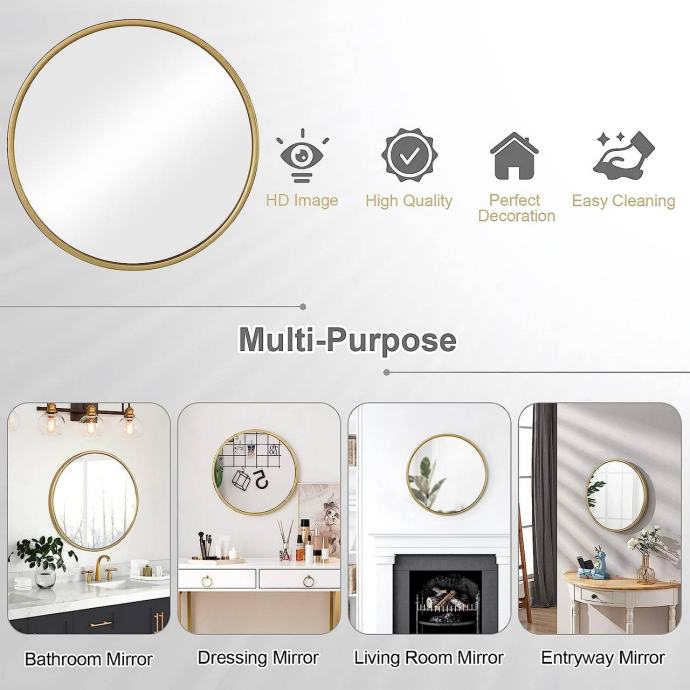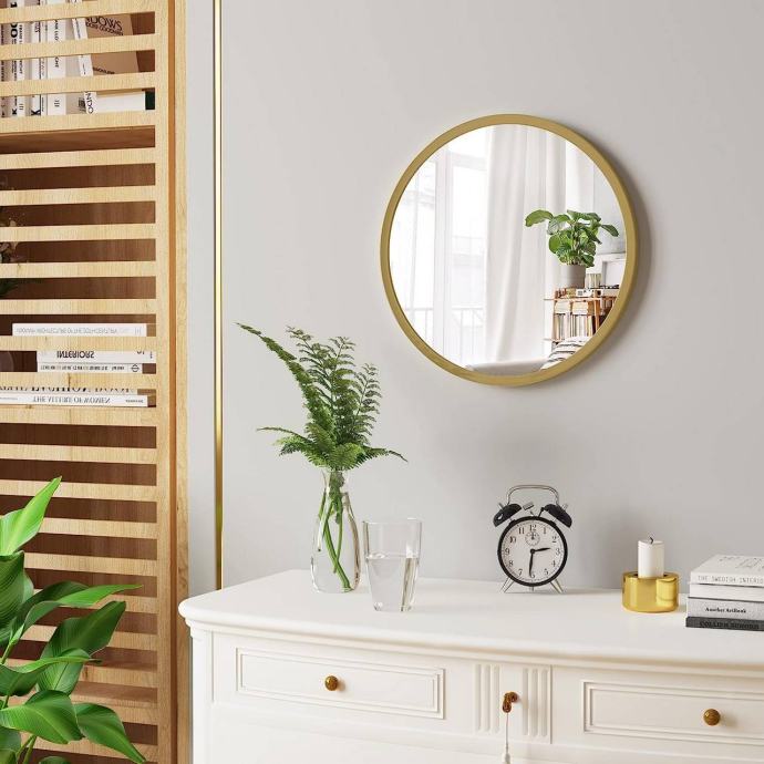 Elegantno okruglo zidno ogledalo WOLTU savršeno je za spavaće sobe, hodnike, kupaonice ili dnevne boravke. Kombinira minimalistički dizajn, luksuzan izgled i funkcionalnost, ističući prostor i povećavajući svjetlinu u prostoriji.