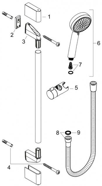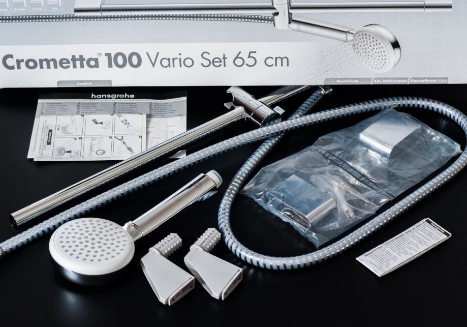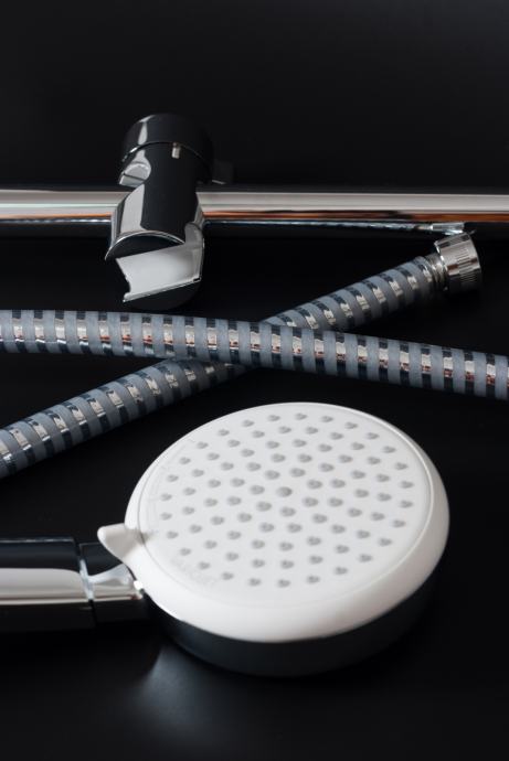 U kompletu dolazi sve što je na slikama, zapakirano u originalnu kartonsku kutiju : ručka, nosač, crijevo, upute i montažni materijal.