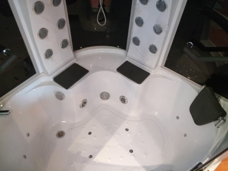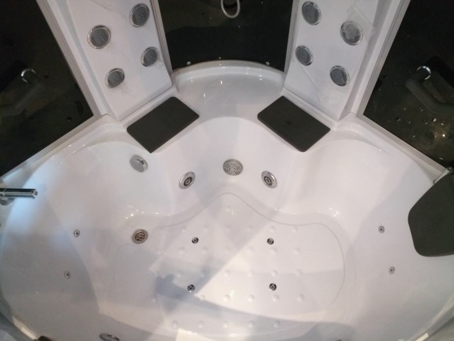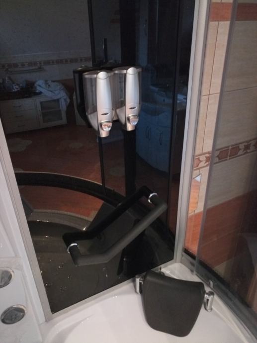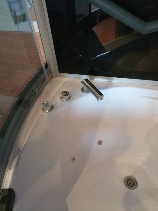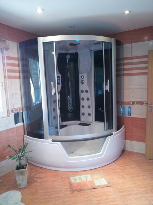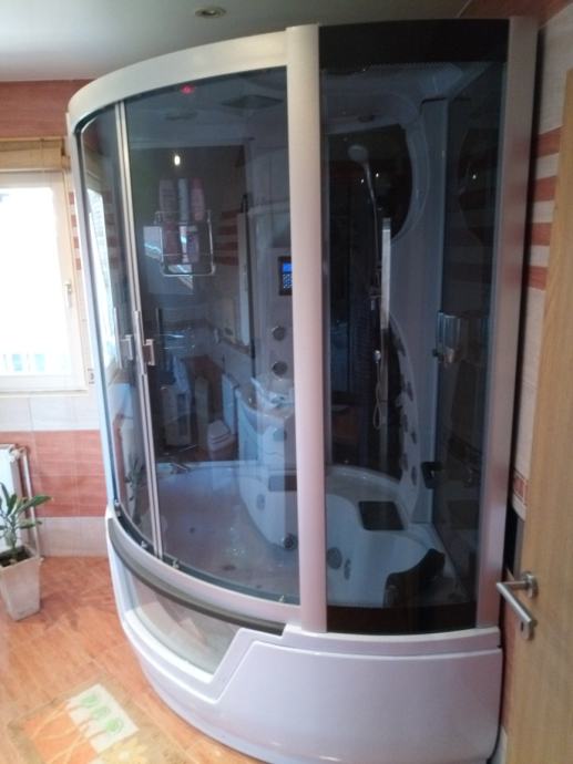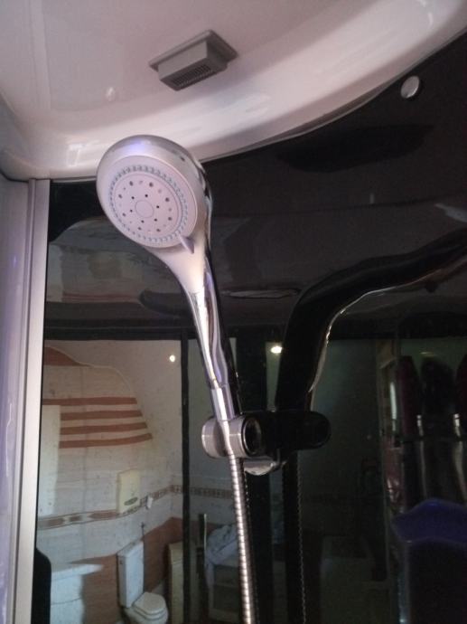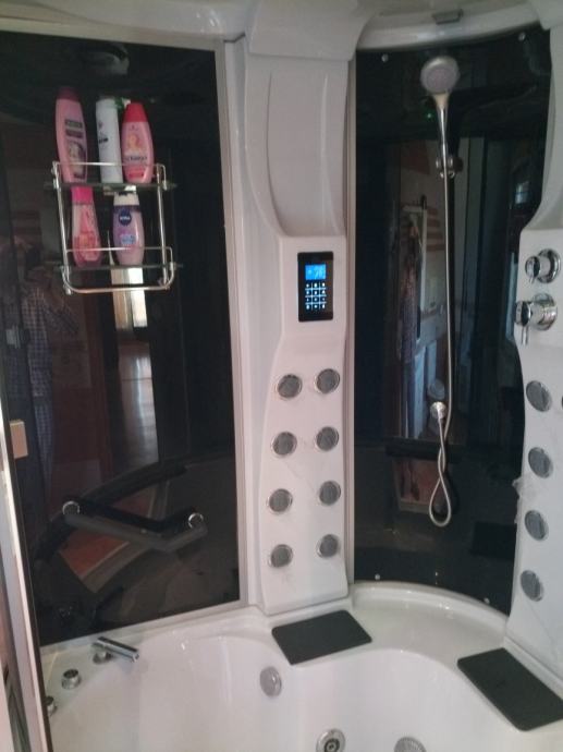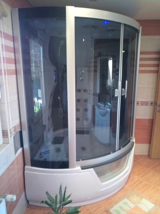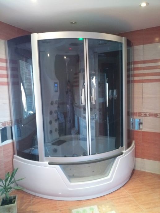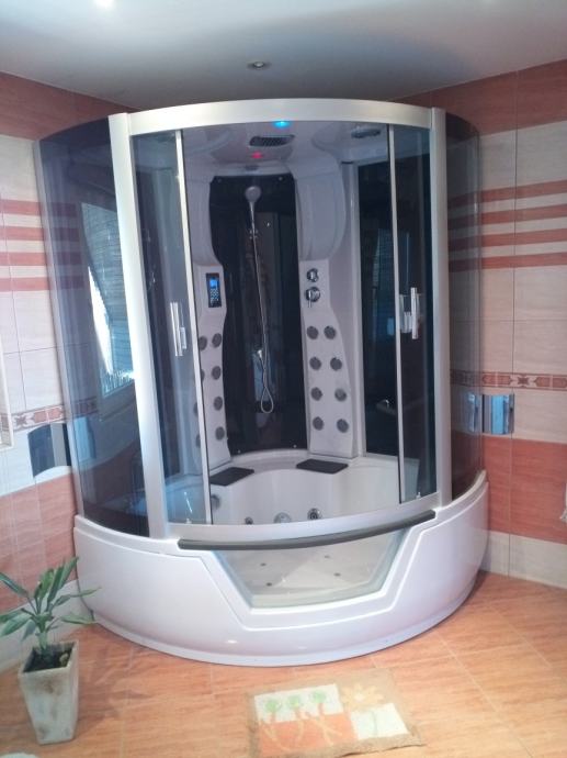 sa led svjetlom, radio sa touch funkcijom kao i , priključak fiksnog telefona te prednji donji dio kade ostakljen kao i gornji dio sa tamnim metaliziranim staklom sve se vidi na priloženim izvornim slikama vrlo je velika i prostrana i treba velika kupaona za nju dimenzije Kabine š150xd150xv225