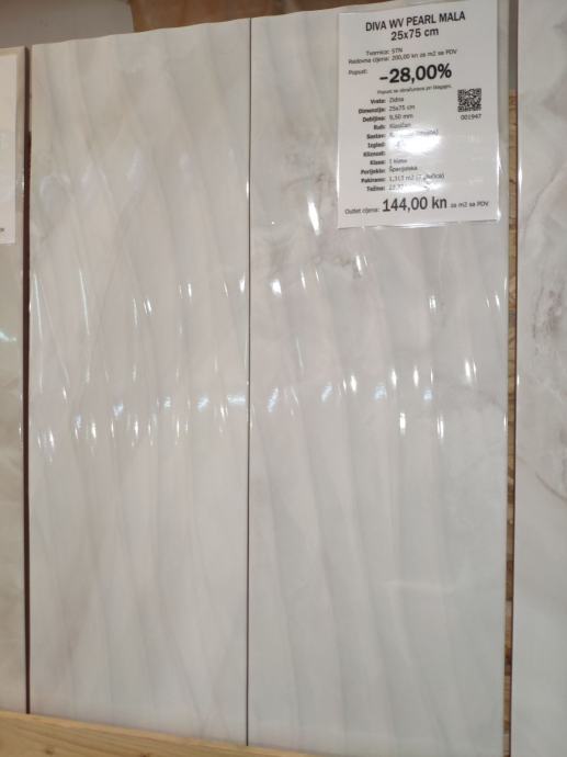 Keramičke pločice 1. klase za kupaonice Diva WV Pearl (25x75cm)