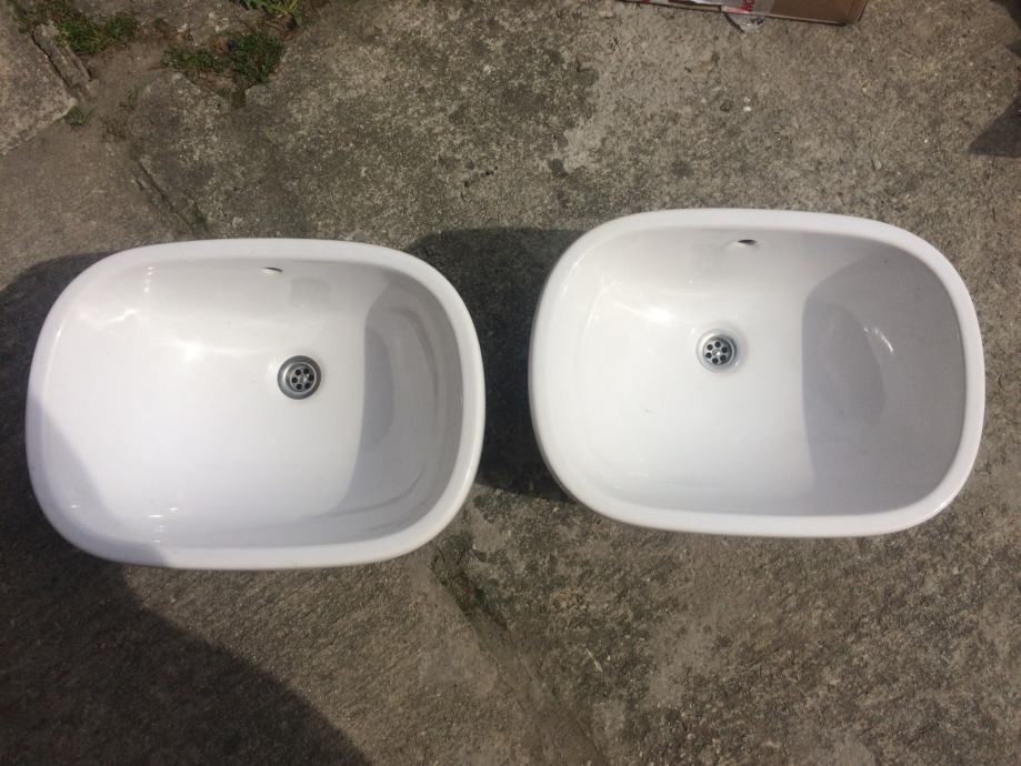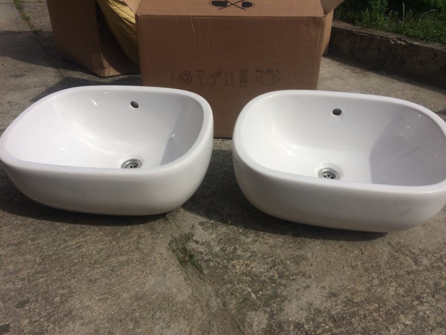 Prodaju se dva jako kratko korištena keramička umivaonika u besprijekornom stanju vrhunske kvalitete. Dužina umivaonika je 52 cm, a širina 38 cm.