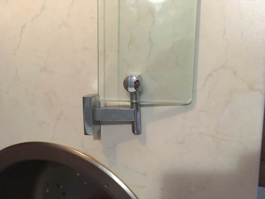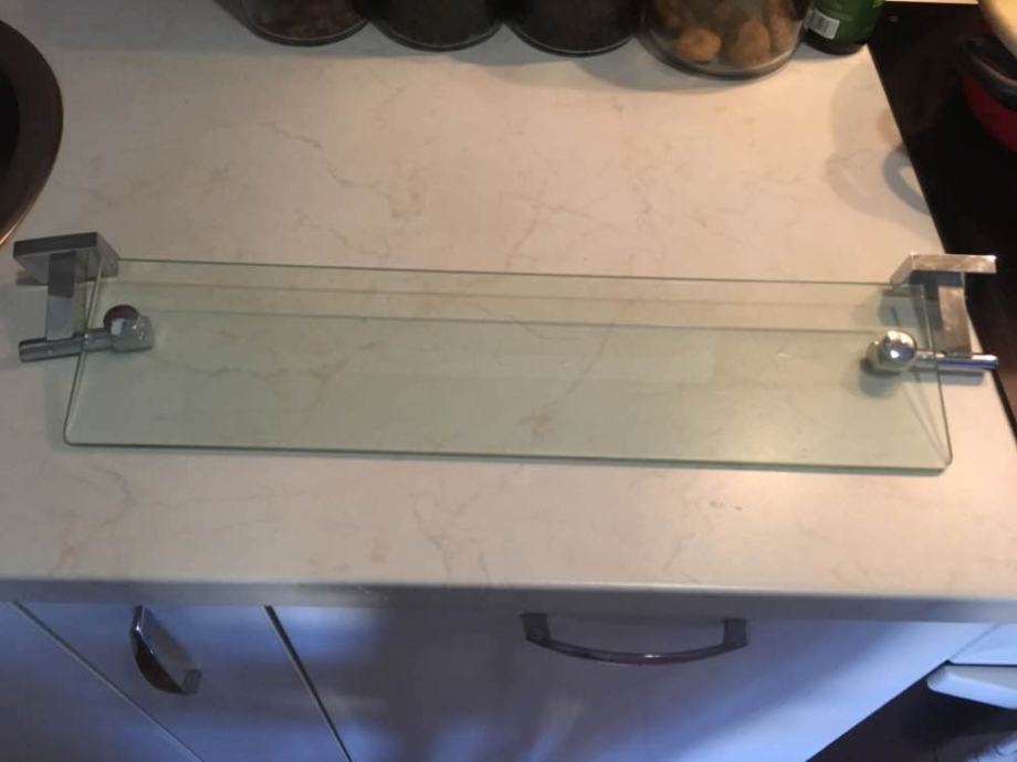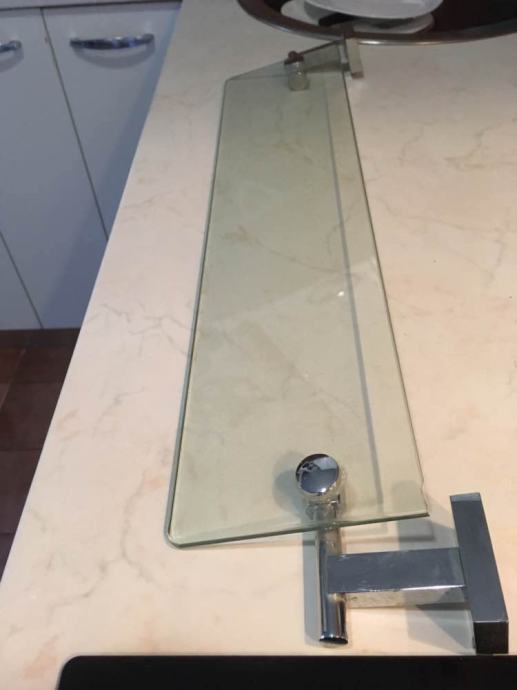 Prodaje se staklena polica za kupaonicu dimenzija duzina 50cm x sirina 13cm 2kom.Polica se pricvrscuju tiplama i vijcima za zid. Preostali dio povrsine police je od poliranog kroma. Vidljiva manja ostecenja staklenog dijela s unutarnje strane police kod nosaca. Mogucnost dostave na podrucju grada Zagreba prema dogovoru.