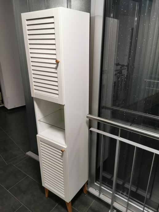 Prodajem kupaonski ormaric sa dva zatvorena dijela i sa otvorenim srednjim dijelom sa staklenim policama.