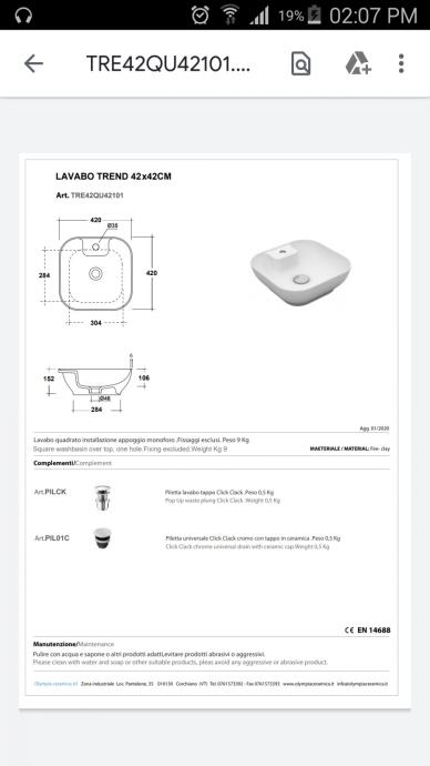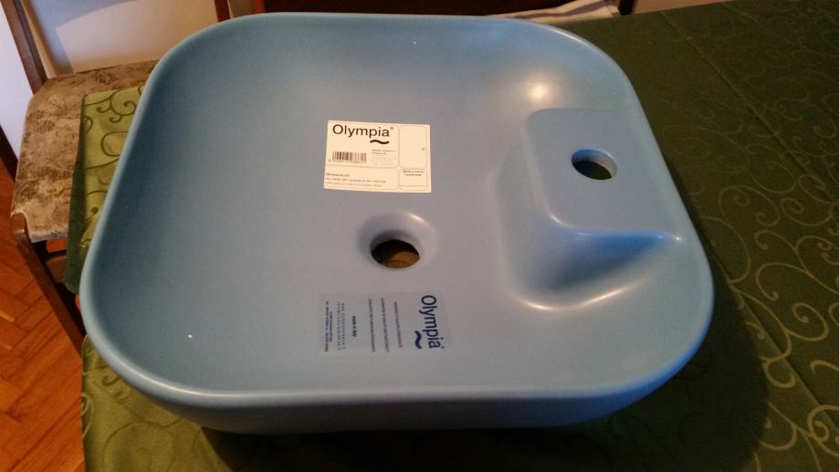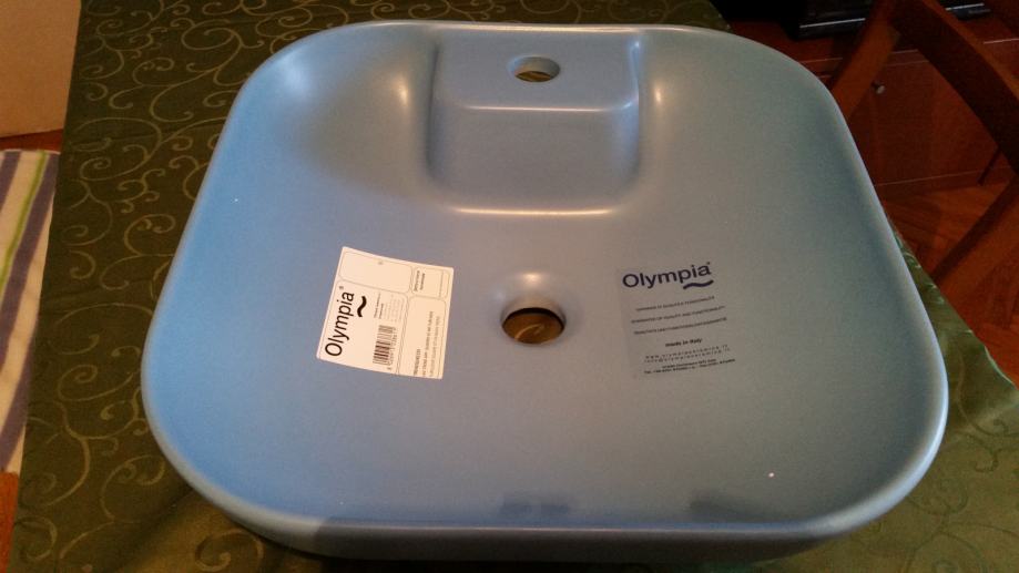Prodajem nadgradni keramički umivaonik, kvadratnog oblika, svijetlo plave boje. Dimenzija 42x42x15, talijanskog proizvođača Olympia.