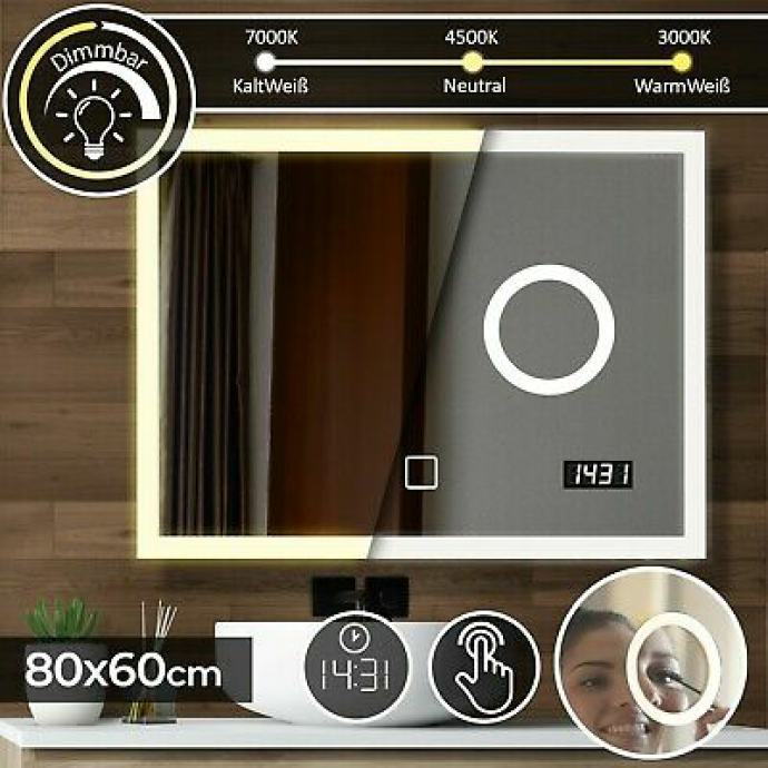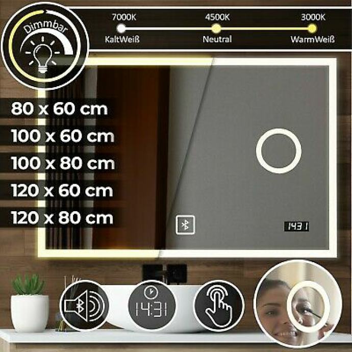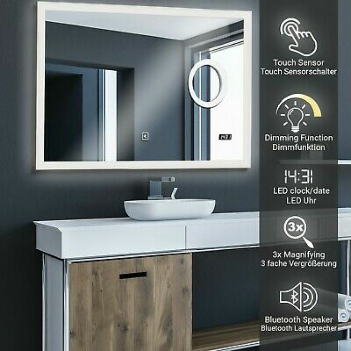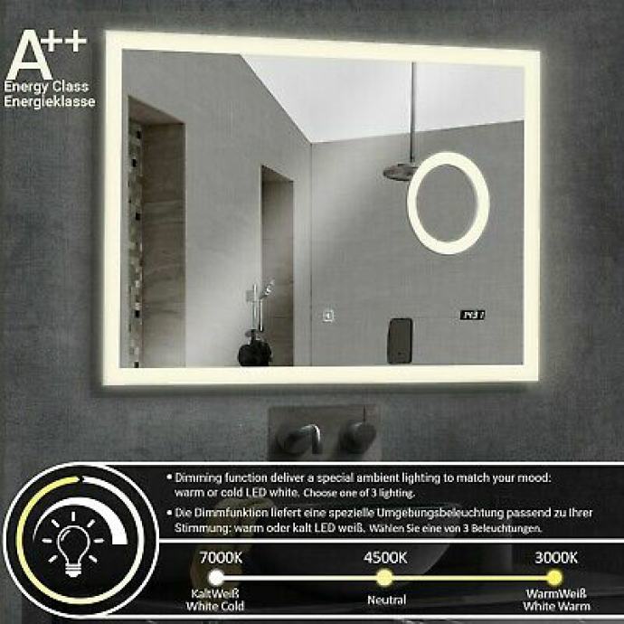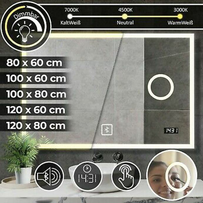 Kupaonsko ogledalo sa antifog sustavom, stom, osvijetljenjem tri jačine svjetlosti posjedujemo više komada i dimenzija .