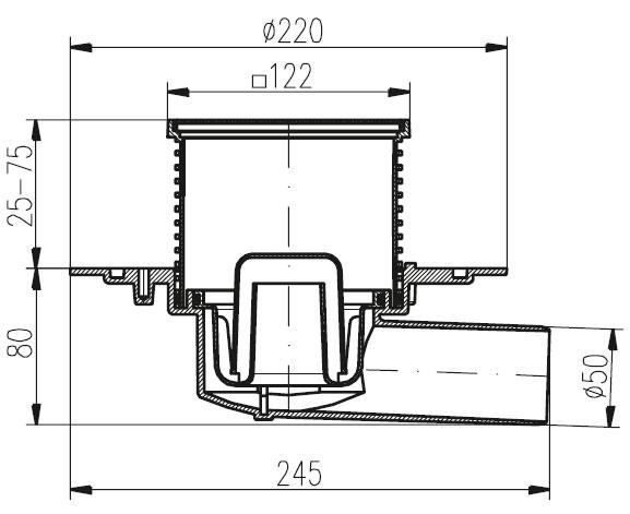 Podni sifon univerzalni (unutarnji/vanjski) s klapnom protiv povrata neugodnih mirisa i inox rešetkom 15x15 cm,Češki proizvod,novo! idealno za ugradnju u kupaonicu ili na terasu!