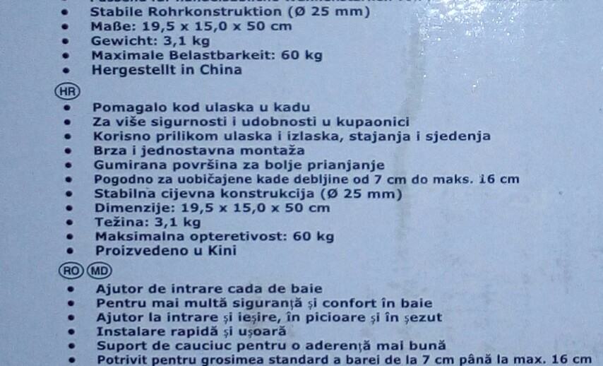 Pomagalo kod ulaska u kadu, novo u originalnoj ambalaži,
