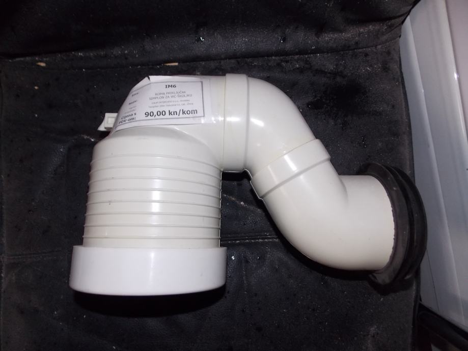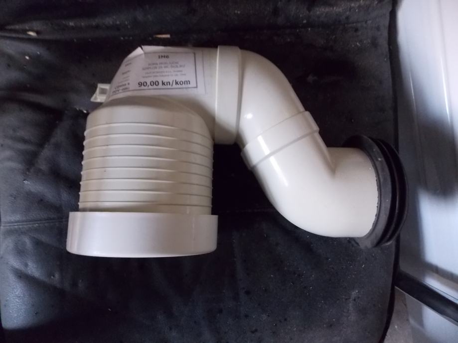 S sifon za wc školjku. Školjke koje su predviđene za zidno spajanje sa ovim S nastavkom možete je spojiti na podni priključak.