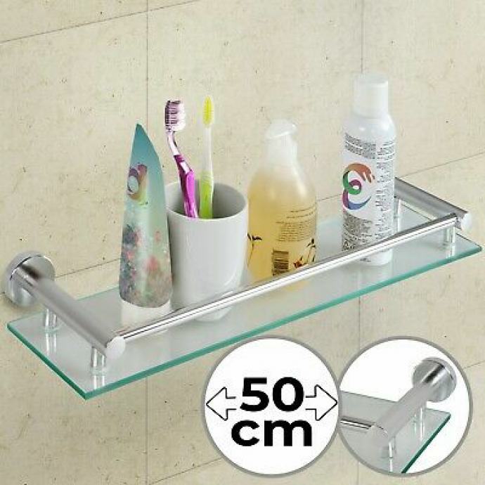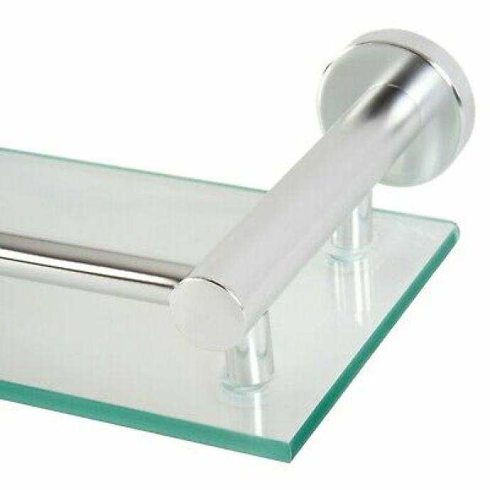 Staklena zidna polica nudi prostor za četkice za zube, kozmetiku i još mnogo toga. Sve stvari koje želimo imati pri ruci ujutro ovdje su prikladno spremljene. Polica također ispunjava svoju svrhu kao praktični prostor za odlaganje iznad kade ili pod tušem. Kombinacija aluminija i kaljenog stakla izgleda lagano i elegantno, stane u svaku kupaonicu i brzo se instalira. Praktični dodatak za kupaonicu koji izgleda dobro i svojim se suptilnim dizajnom može kombinirati s mnogim stilovima opremanja. Pribor potreban za brzu montažu već je uključen u opseg isporuke.