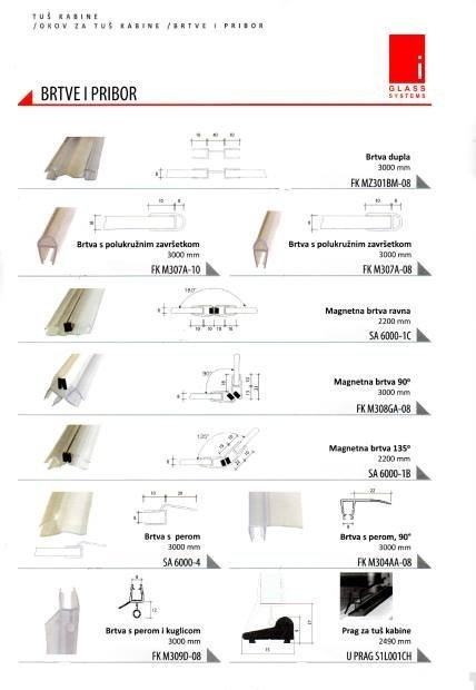 Profili za montažu fiksne stijene sa brtvama