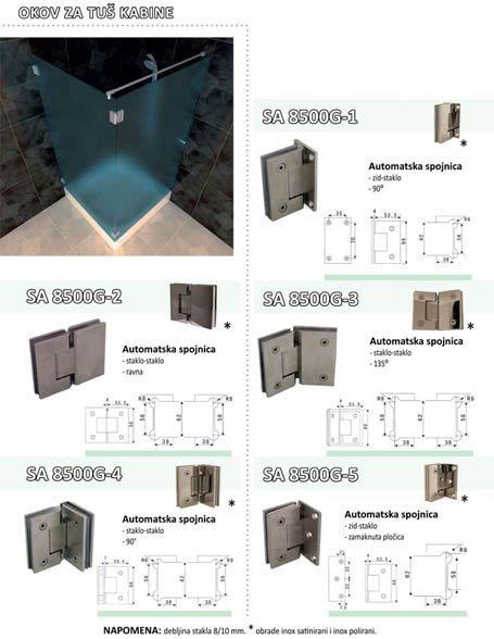 Tuš kabina dimenzije: 70 x 100 x 200 cm, izrađena od kaljenog stakla debljine 8mm sa inox okovima i brtvama ( brtve sa magnetima ) .