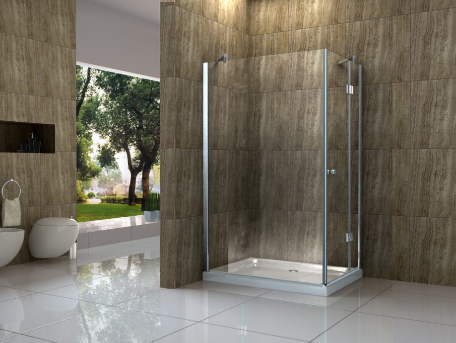 Tuš kabina dimenzije: 70 x 80 x 200 cm, izrađena od kaljenog stakla debljine 8mm sa inox okovima i brtvama ( brtve sa magnetima ) .