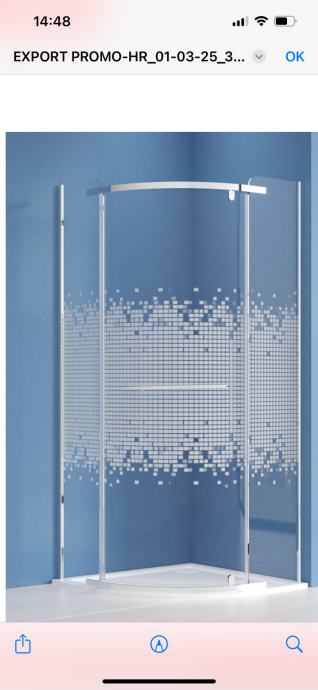 Dimenzije 900x900 ili 800x800 ,visina kabine 195cm, visina kadice 12,5cm